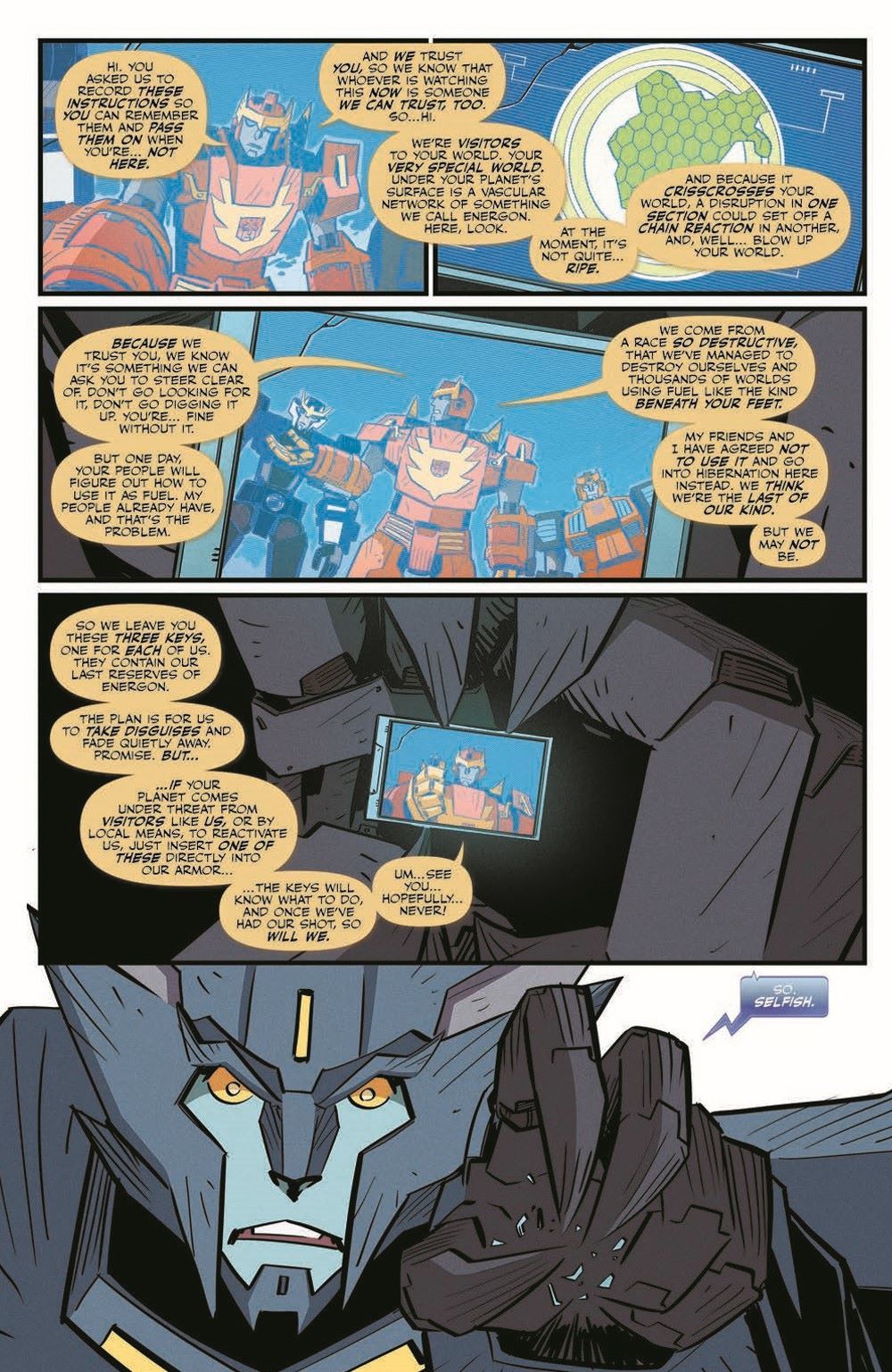 It's come to this! Donnokt—no, the universe—hangs in the balance. The last true Cybertronian stands against Visitors from another world to determine the future. One shall stand, one shall fall. Find out who will be the Last Bot Standing!