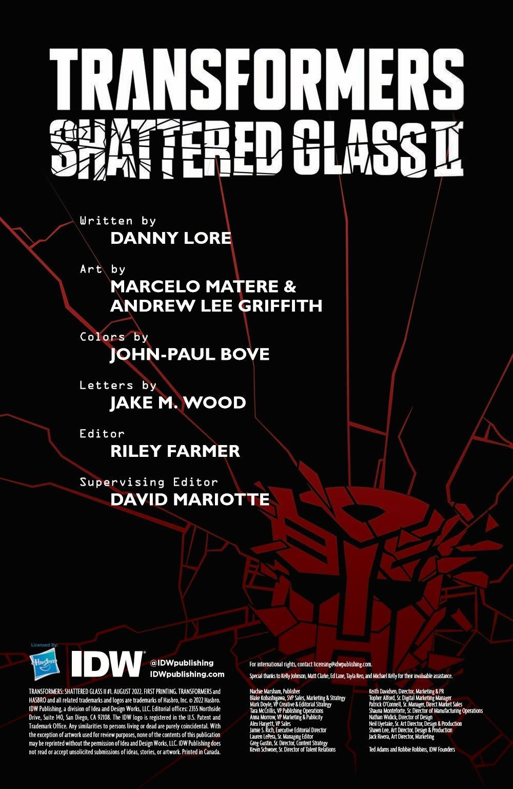 Shattered Glass is back! Optimus Prime is a ruthless tyrant, and Megatron is a compassionate peacekeeper. Cybertron sits on the brink of war as Autobots and Decepticons race to gain control of a Titan that could destroy either side in nanocycles. While everyone has their eyes on the Titan, Ultra Magnus, a powerful shadow broker, puts into action a plan kilocylces in the making…