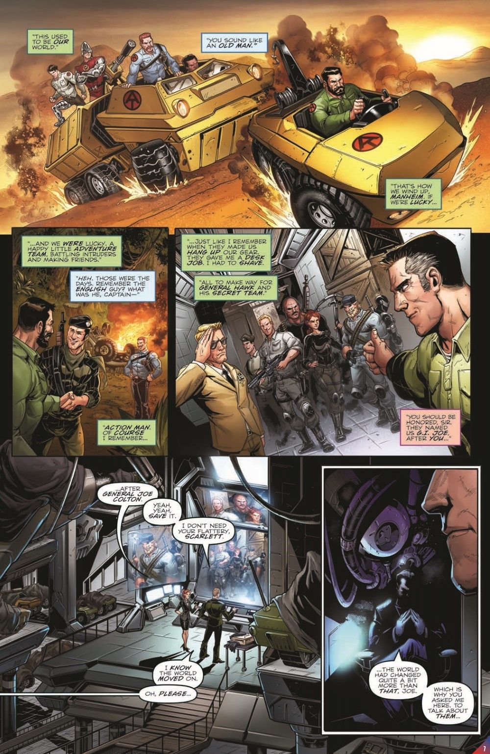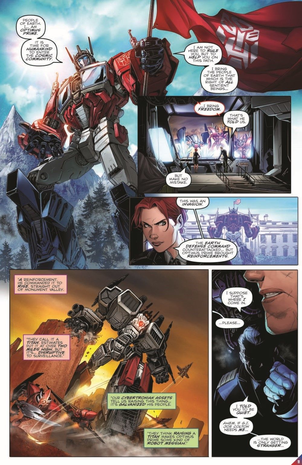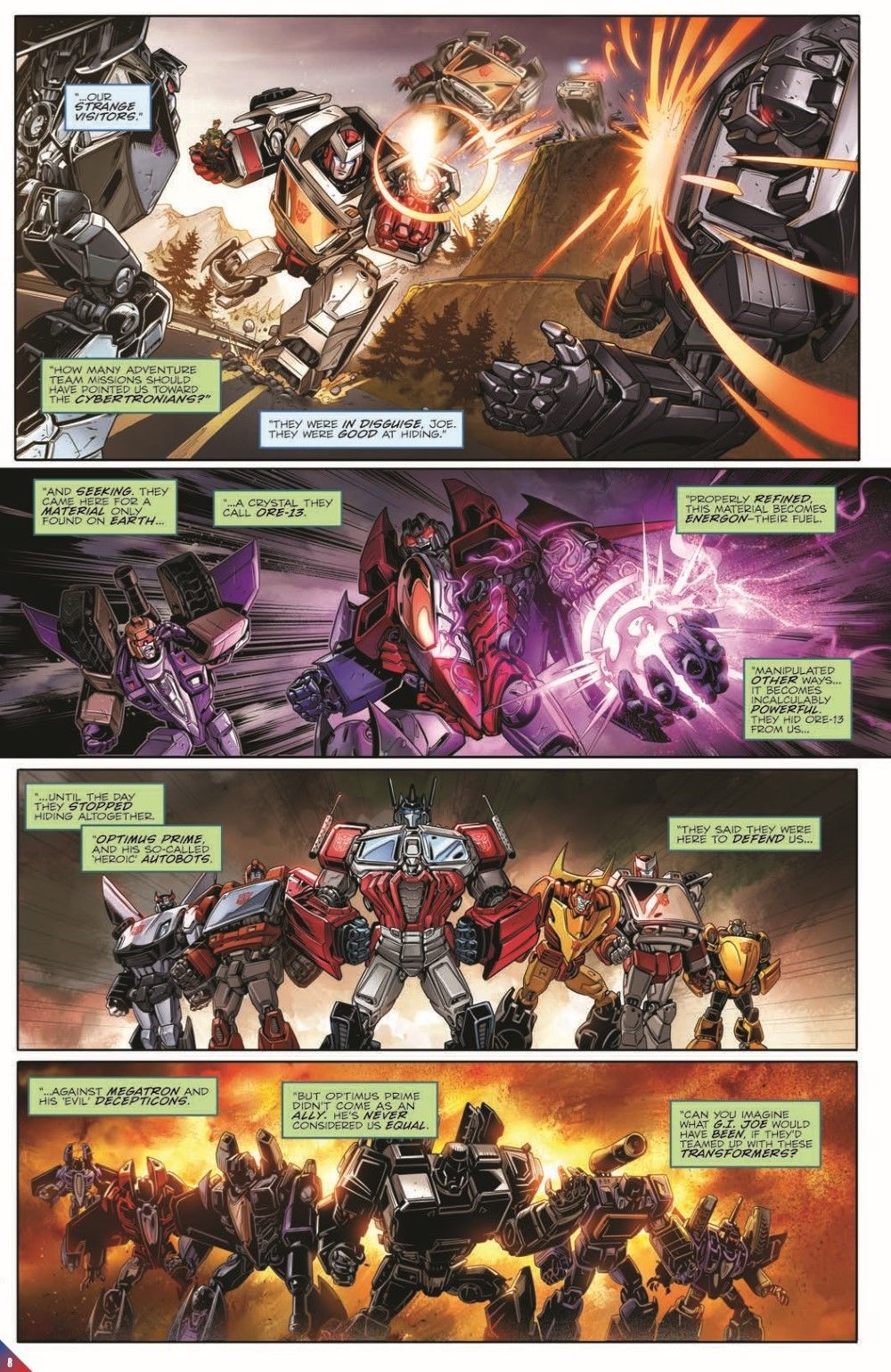 The Revolution begins here! Explosions rip across Earth-and all signs of blame point to OPTIMUS PRIME and the TRANSFORMERS! G.I. JOE refuses to go quietly however-and they assemble heroes big enough to stop the invaders! ACTION MAN and M.A.S.K. fight for humanity as well, but where do ROM and the MICRONAUTS stand?