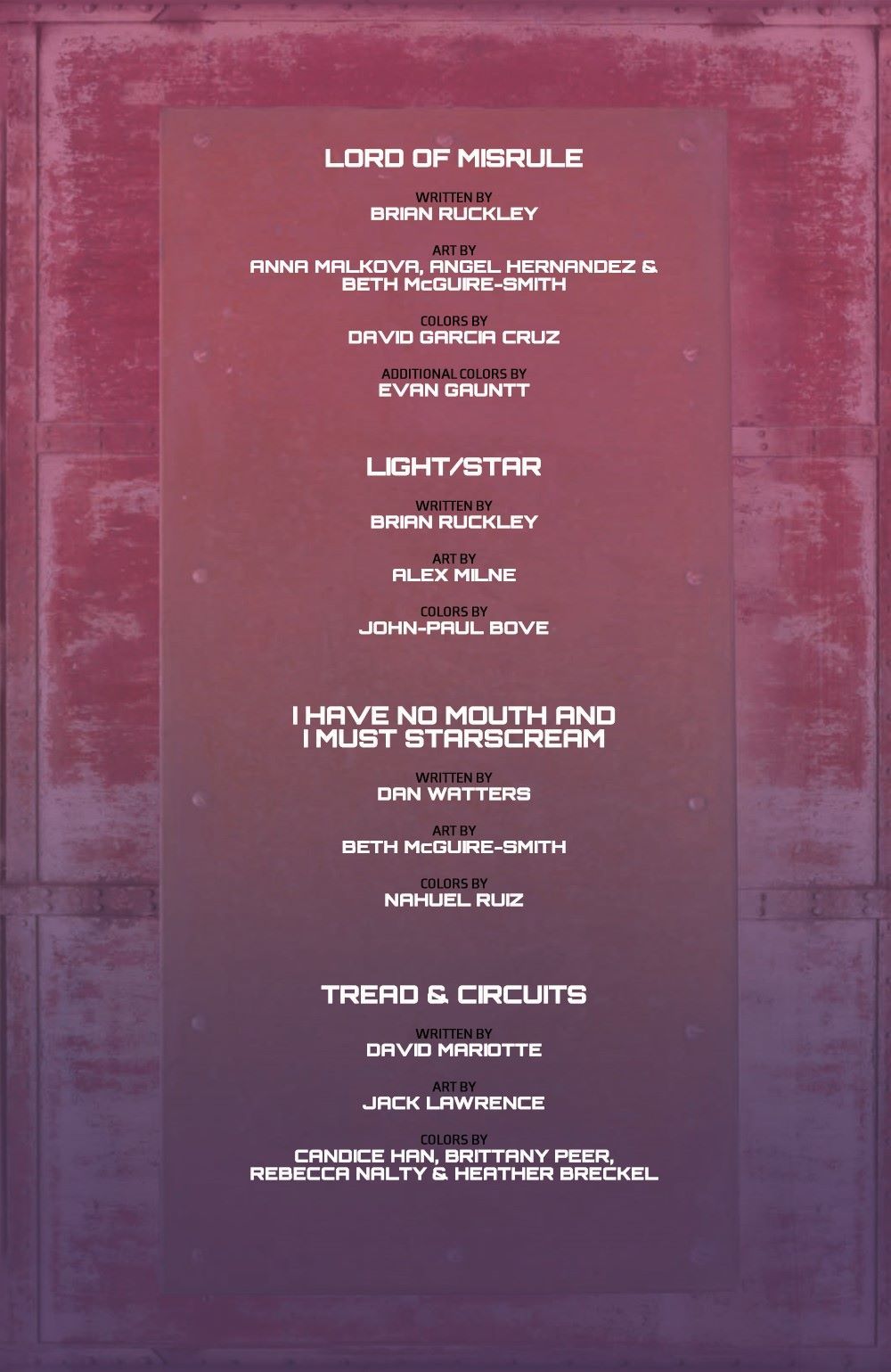 Brian Ruckley, David Mariotte, Anna Malkova, Angel Hernandez, Beth McGuire-Smith
