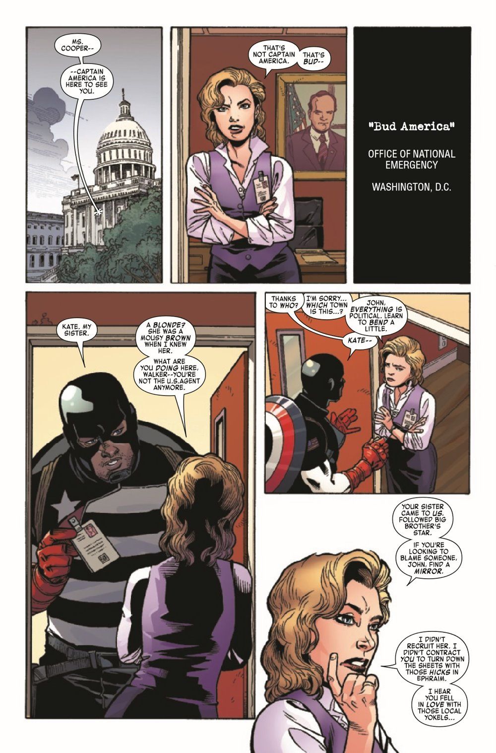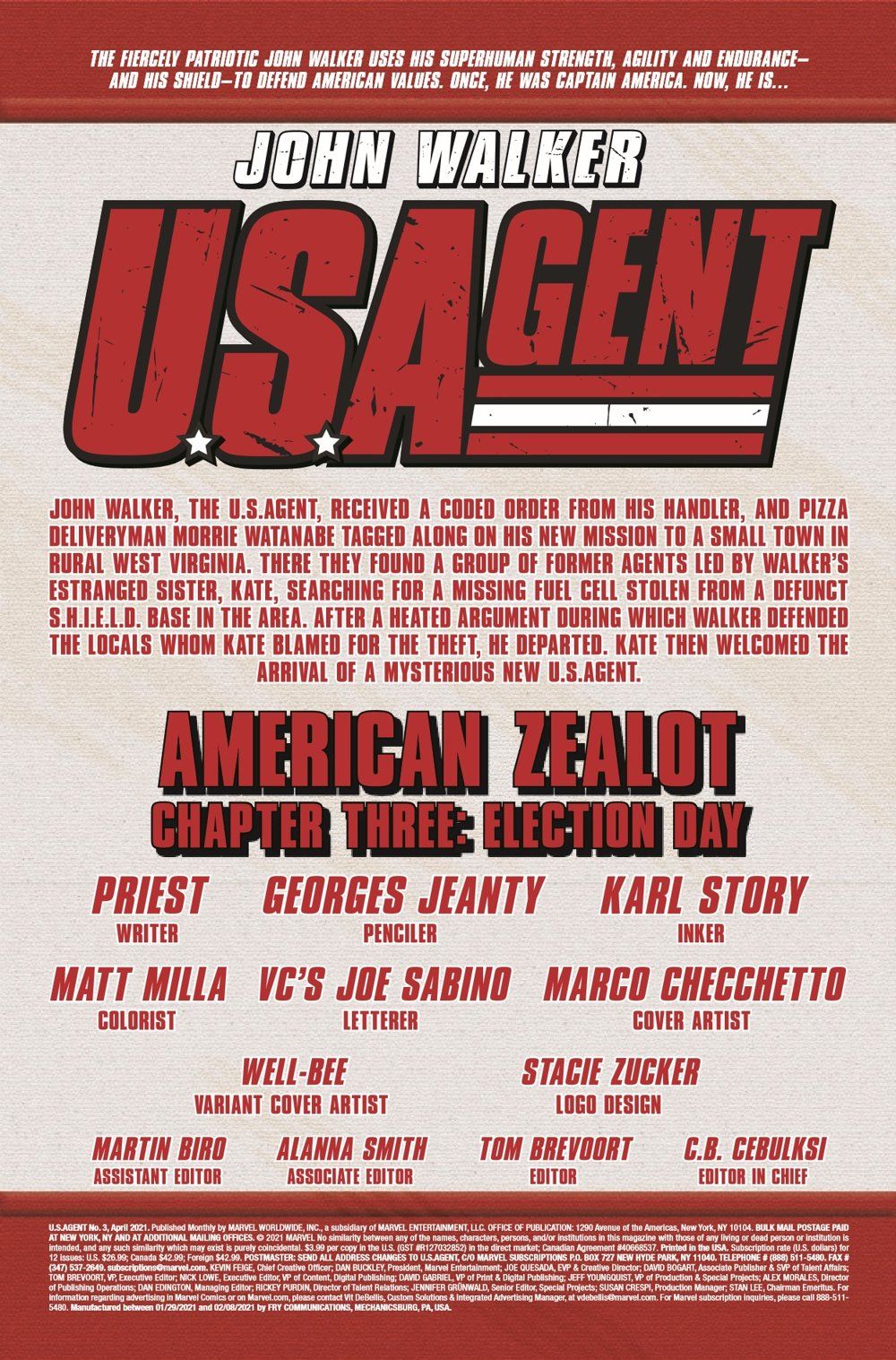 Having abandoned his mission to assist the skeleton crew guarding a long-abandoned S.H.I.E.L.D. facility in Appalachia, JOHN WALKER heads to Washington to confront the politicians who engineered his firing. Meanwhile, the ruthless and enigmatic new U.S.AGENT has arrived to take over Walker's mission and is willing to destroy anything and anyone who gets in his way.