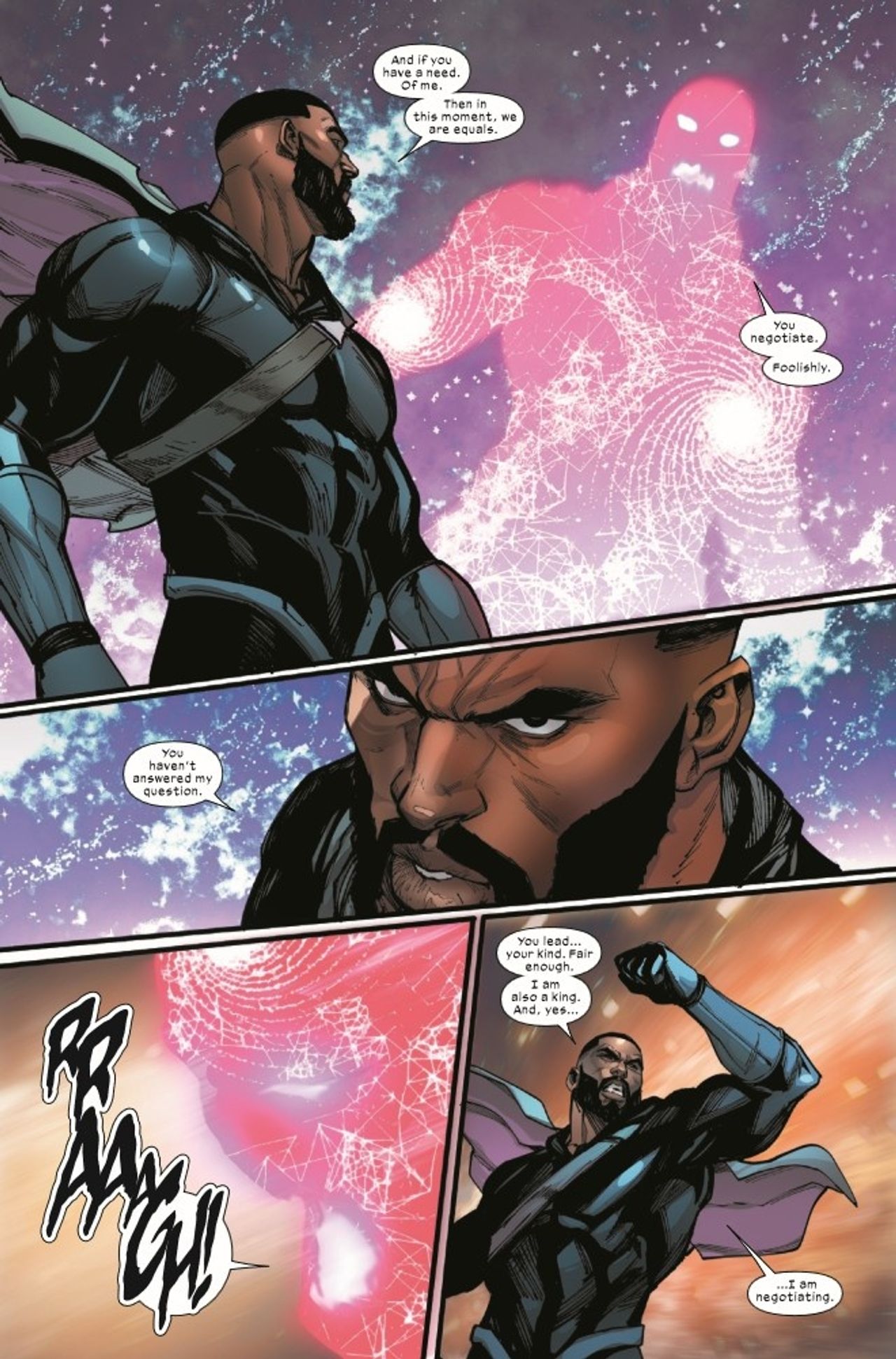 THE EPIC FINALE! T'Challa vs. the Progenitors in a final showdown for control of not only vibranium and Wakanda, but the whole world. And what role will the mysterious "Child of Light" play in all this? Don't miss the thrilling finale that brings this epic series to a close!