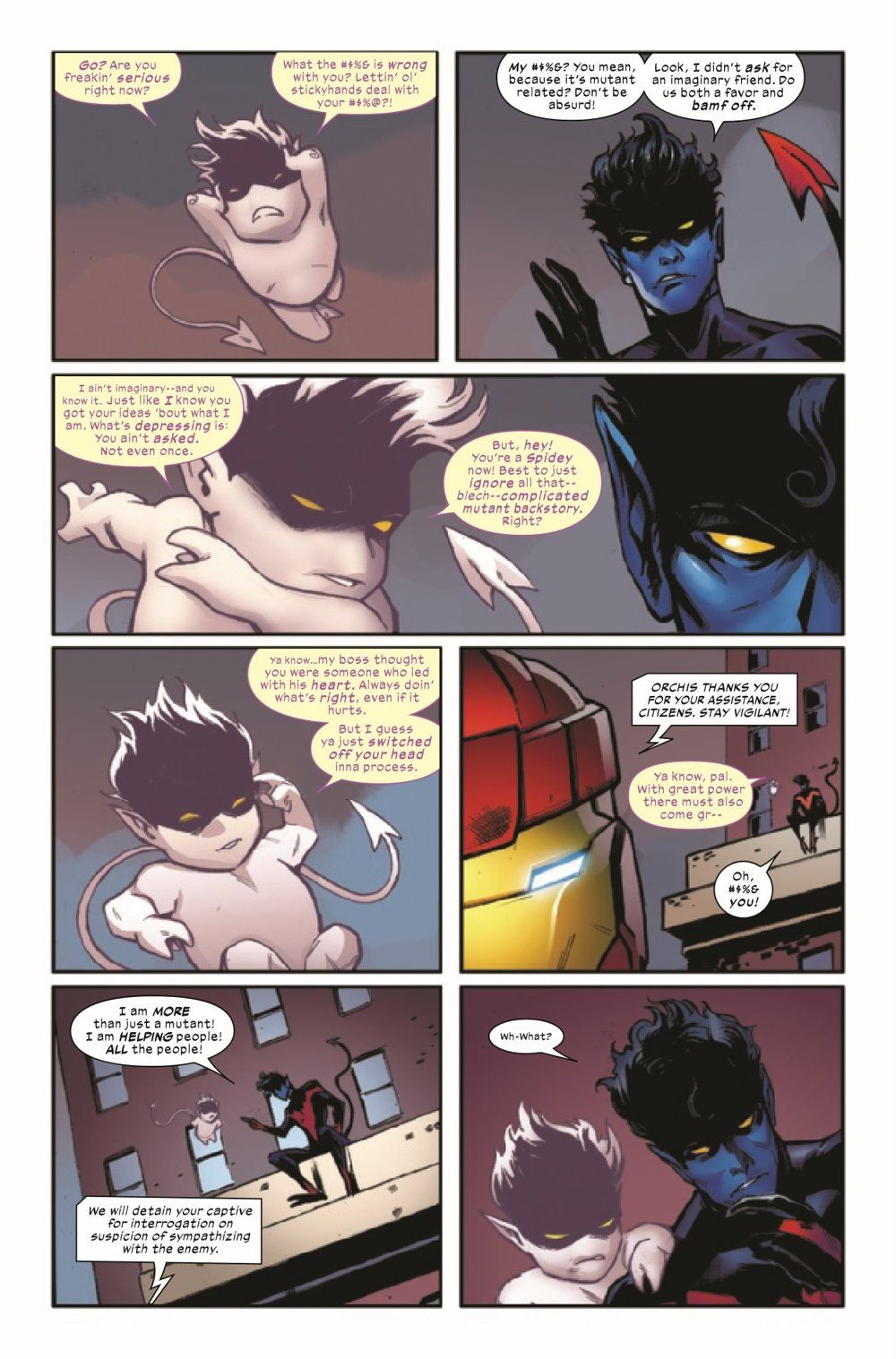 SPIDER-MAN'S A MUTANT! Okay, not that Spider-Man, but we got your attention, eh? Orchis' Stark Sentinels are wreaking havoc across Peter Parker's home turf, and it's not just mutants in the crosshairs now. But while Peter and Kurt thwip and bamf their way around the murderous machines, another set of eyes watches from the shadows. Secrets will be revealed in this penultimate issue!