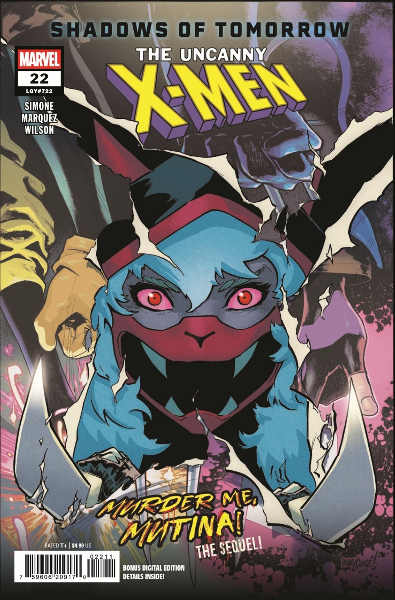 MEAN GIRL MUTINA! A festive event is interrupted by the daughter of darkness herself, Mutina. And she has an unimaginable favor to ask the Uncanny X-Men and woe betide them all if they refuse! It's murderous mutants and cake and blades and you will look very differently at one of the core X-Men after this bloody issue!