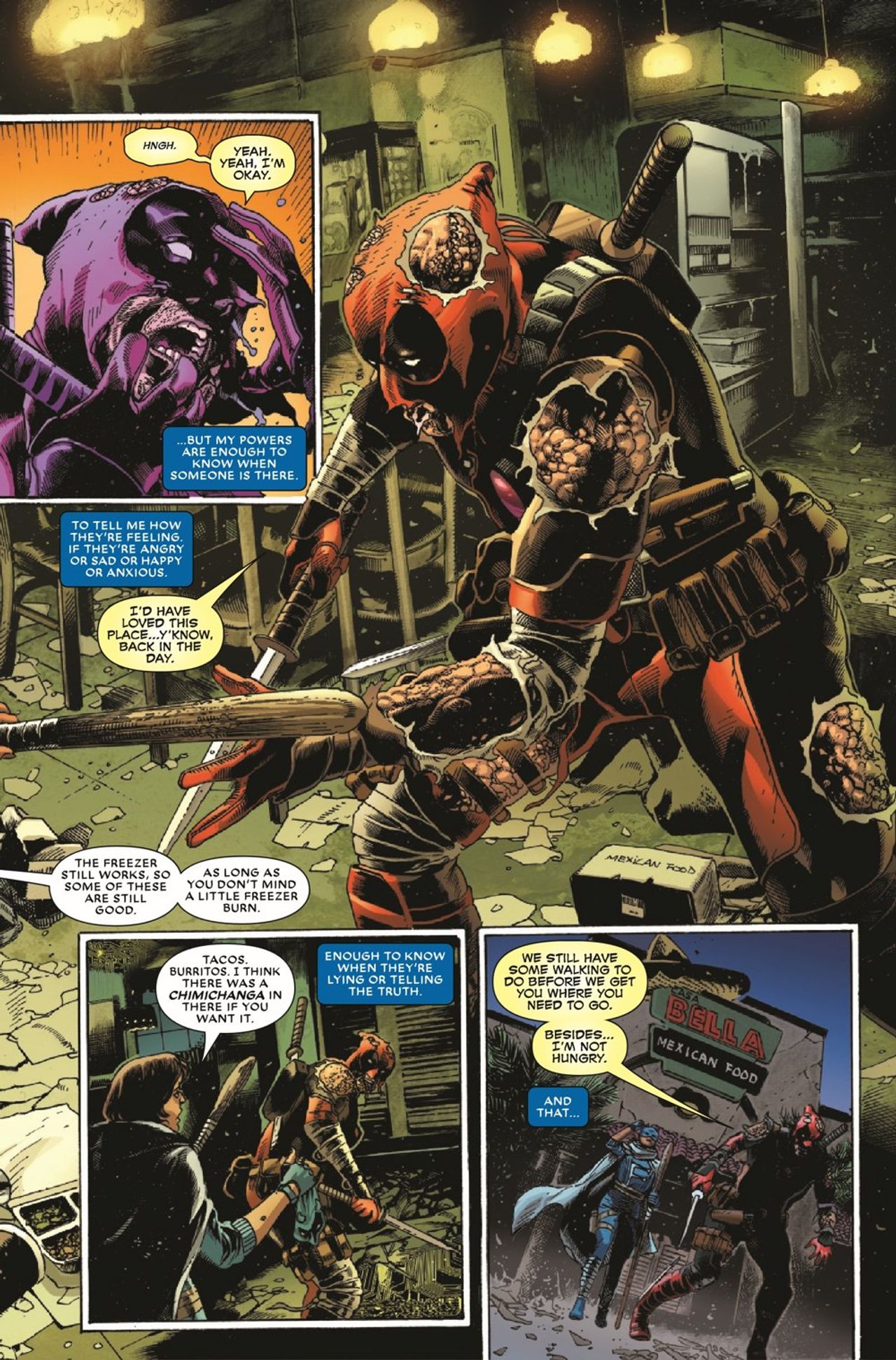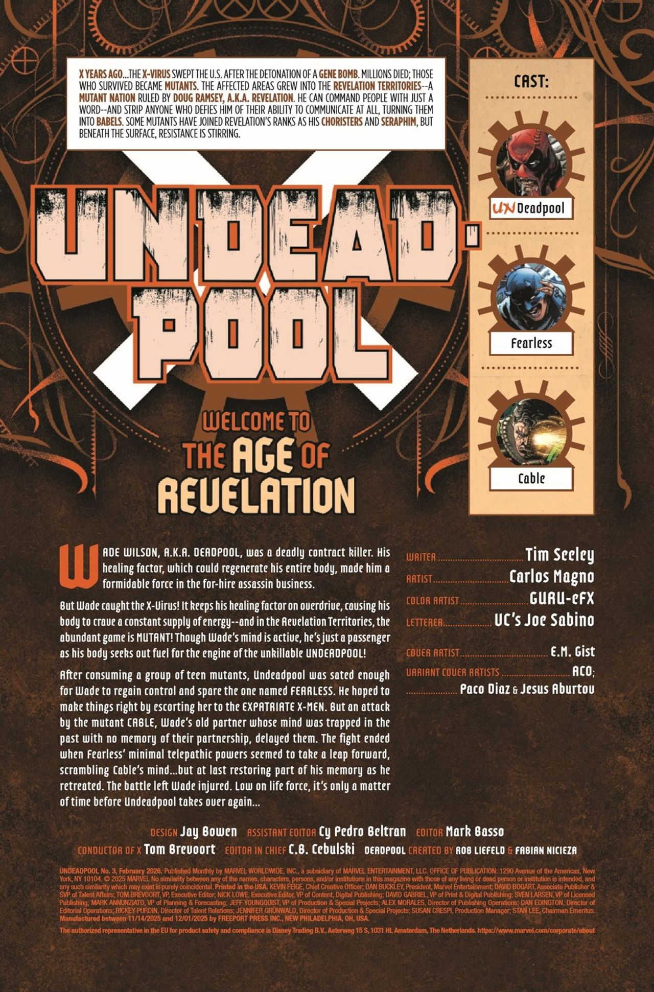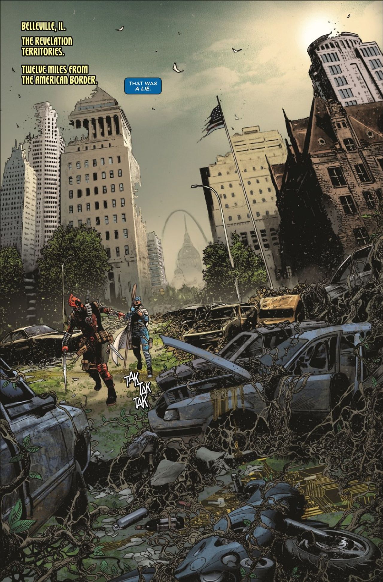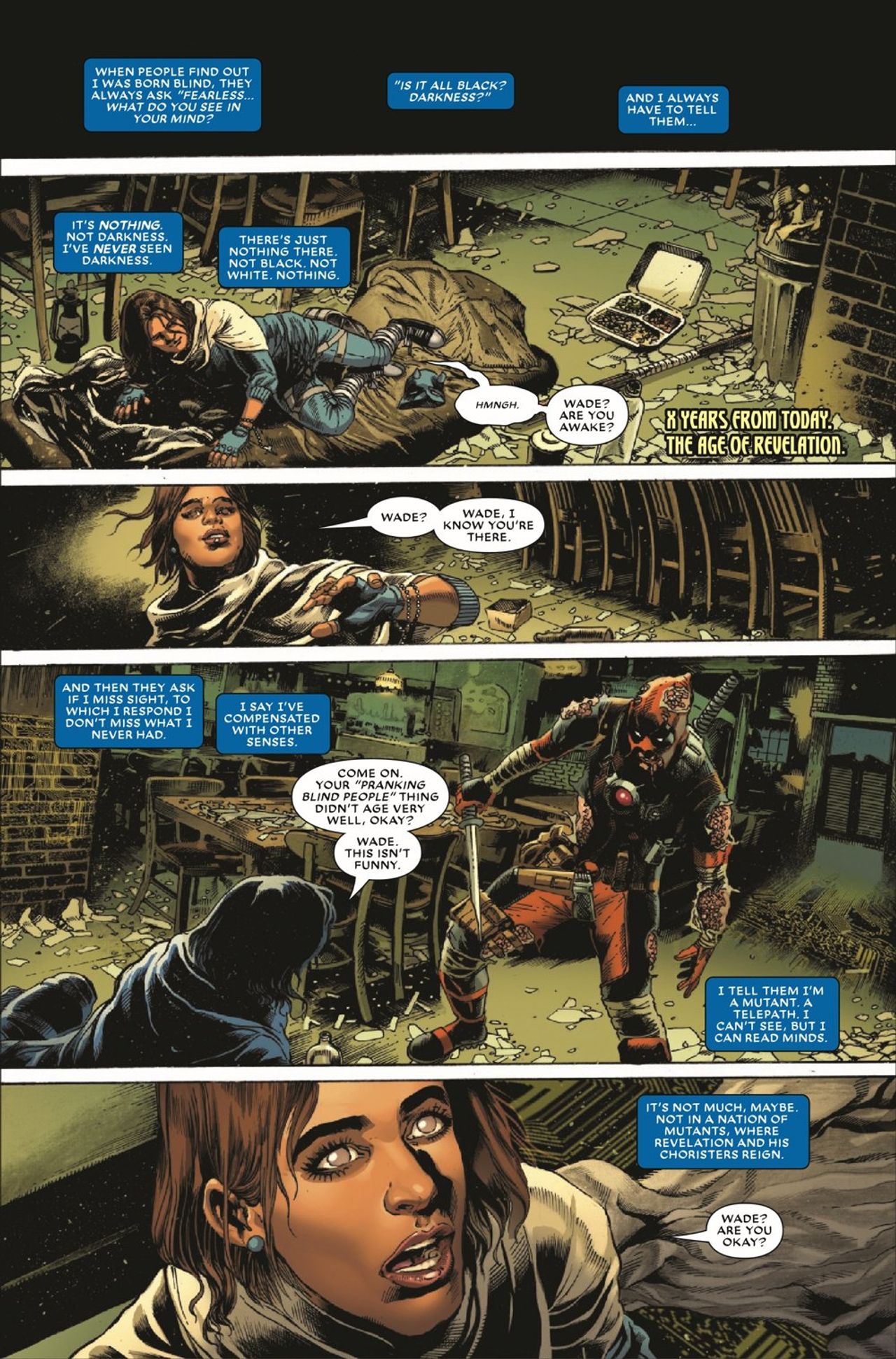 THE PROMISED LAND! X YEARS LATER, WADE WILSON and FEARLESS reach their goal. But will the EXPATRIATE X-MEN complete their mission or fall to the uncontrollable urges of UNDEADPOOL? RATED PARENTAL ADVISORY.