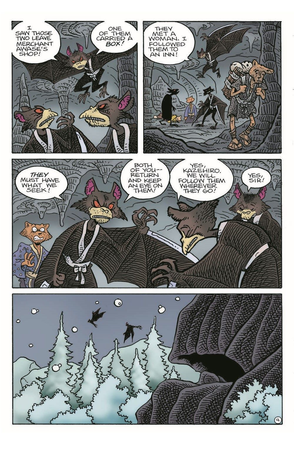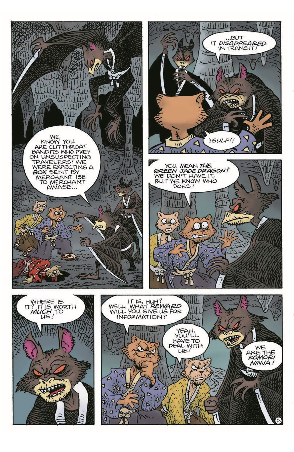 Merchant Awase, his family, and all his employees are dead, and his shop has been ransacked. Chizu, former head of the Neko Ninja, reveals to them the secret document they carry hidden in a nondescript jewelry box. A document that Lord Hikiji, the Shadow Lord, wants and has sent his Komori (Bat) Ninja squad to retrieve, no matter the cost.