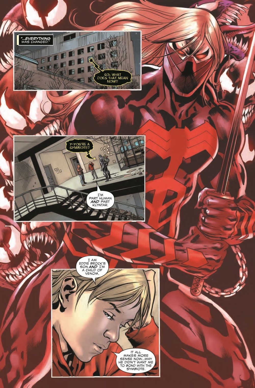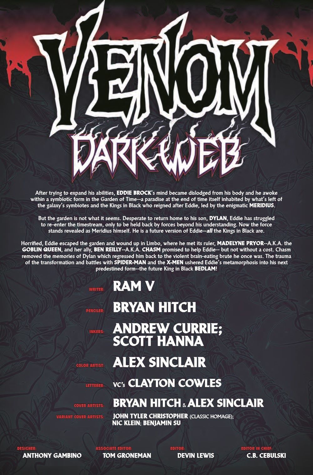As Dylan Brock finds himself renewed and reinvigorated by his descent into the symbiote hive, BEDLAM has come calling again - looking to finish what it started by killing Dylan and Venom once and for all. Luckily, an old friend is around to lend a crimson-clad hand… (And it isn't Spider-Man!)