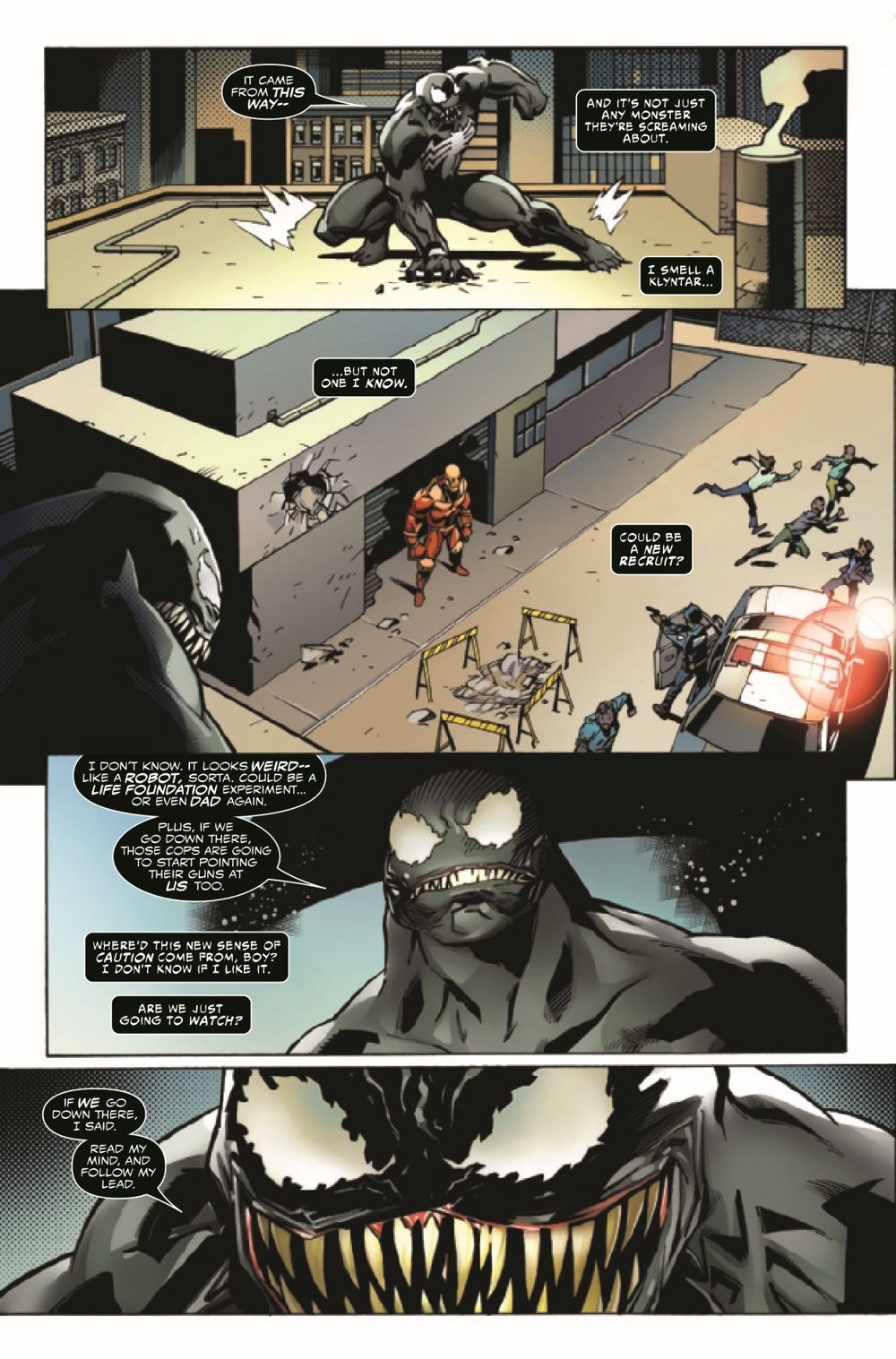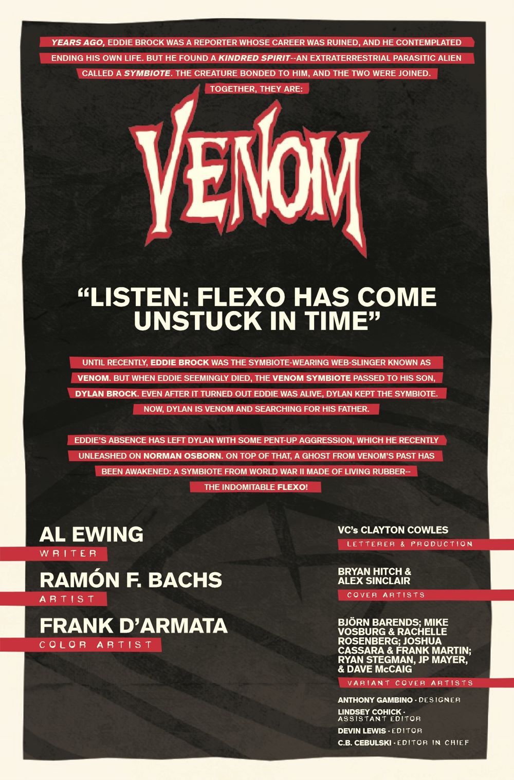 BLAST IN THE PAST! For months, Eddie Brock's consciousness has been displaced in time! You've seen what happens when he's flung himself to the far future of the Marvel Universe - now see what happens when he tries to traverse its past! Face to face with the mysterious FLEXO in the past, the part symbiotes have played in the Marvel U will take a surprising and new turn!