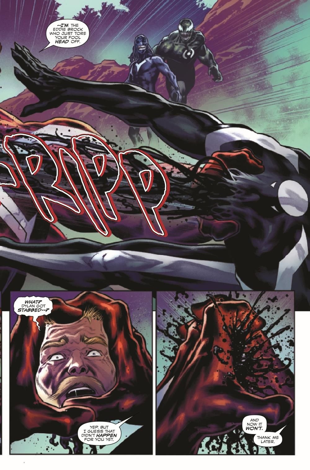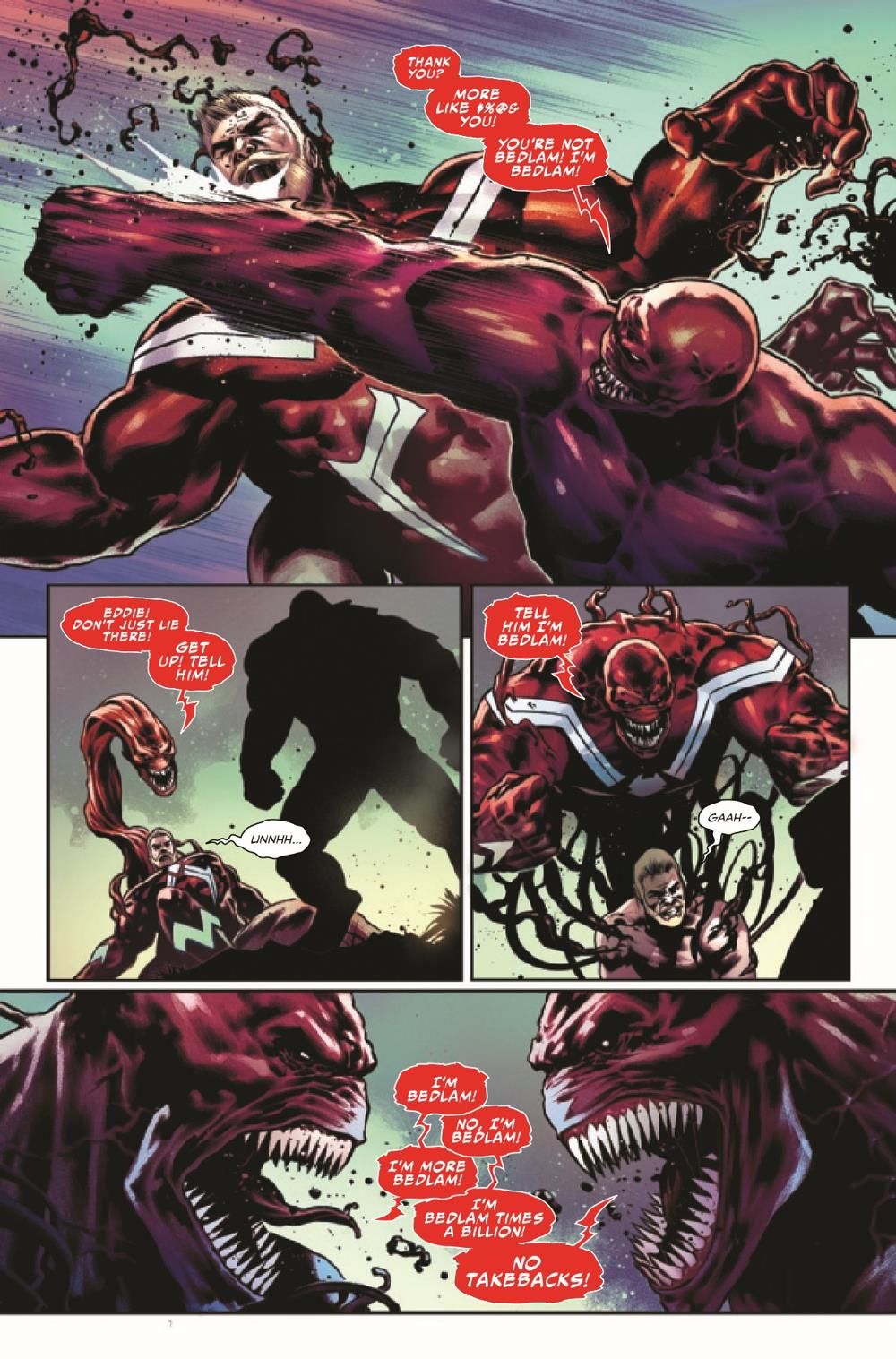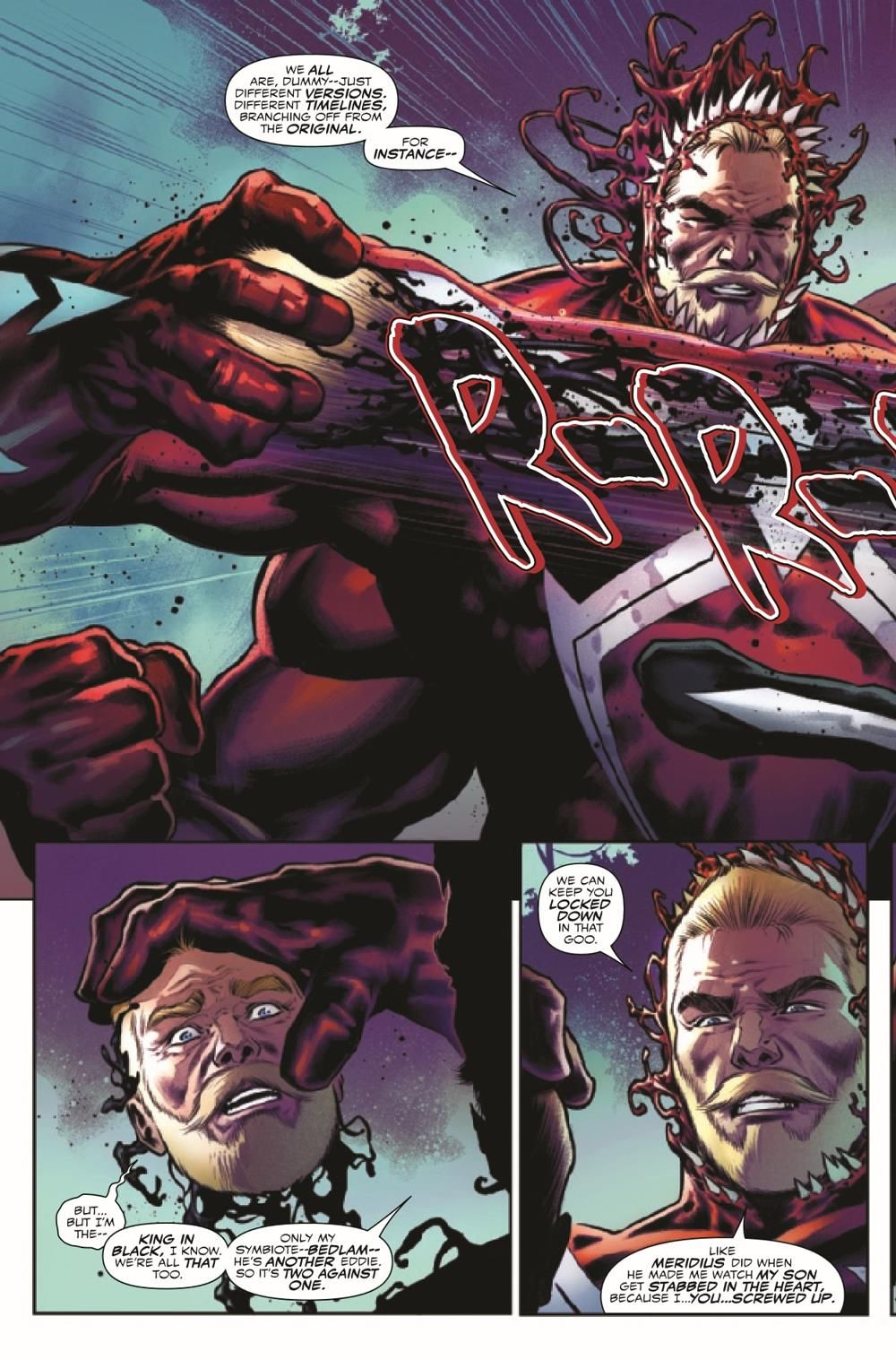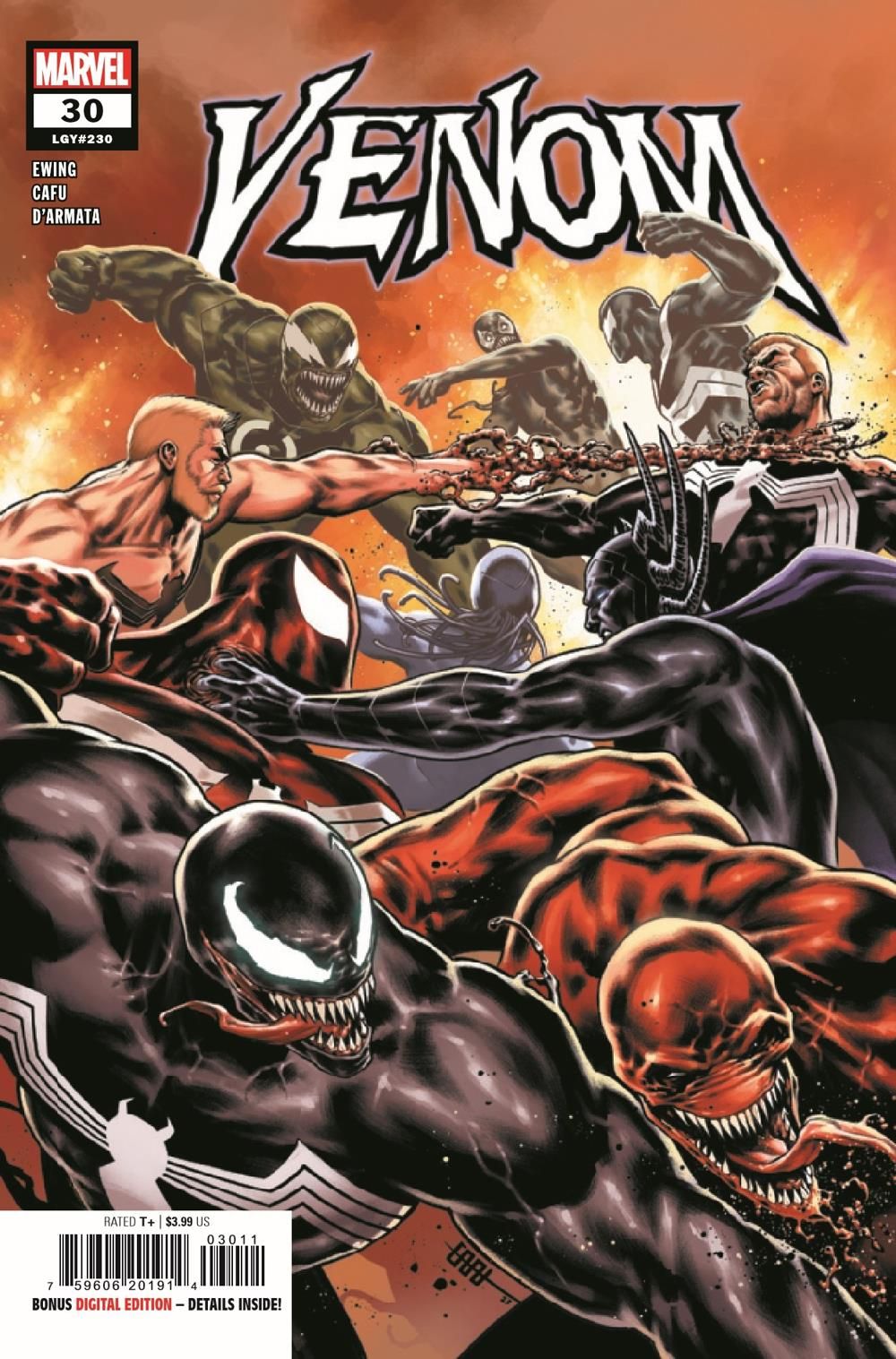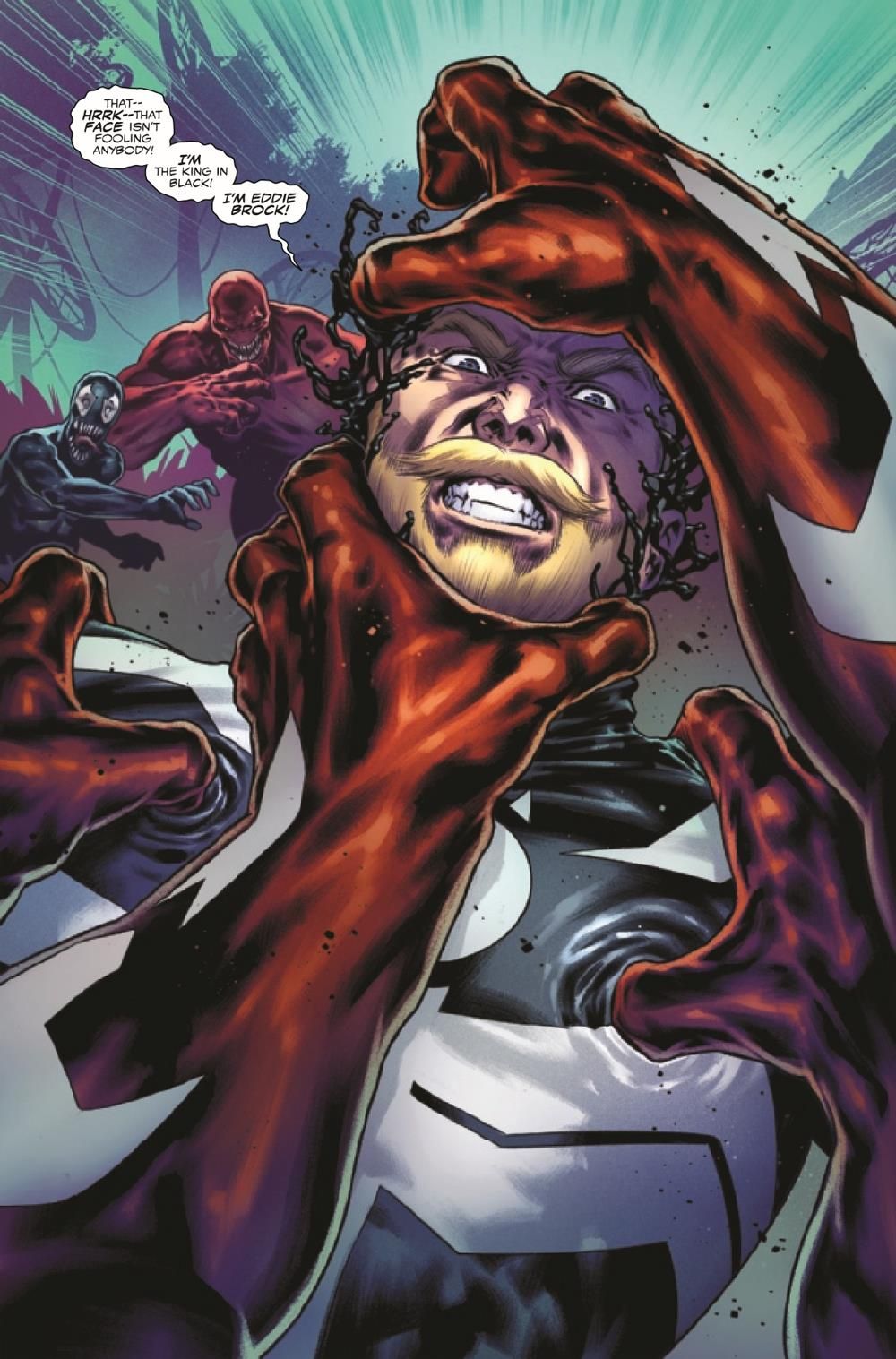 BROCK AND FORTH! Eddie Brock has spread himself too thin - literally! Fractured, exhausted and losing focus, Eddie risks slipping into a familiar sort of look, along with some old (and lethal) habits! Face-to-face against manifestations of his own anger, hate and wrath, will Eddie have the strength to face his greatest foes yet and emerge victorious?! FACE FRONT! This one sets the stage for the next year of the VENOM epic!