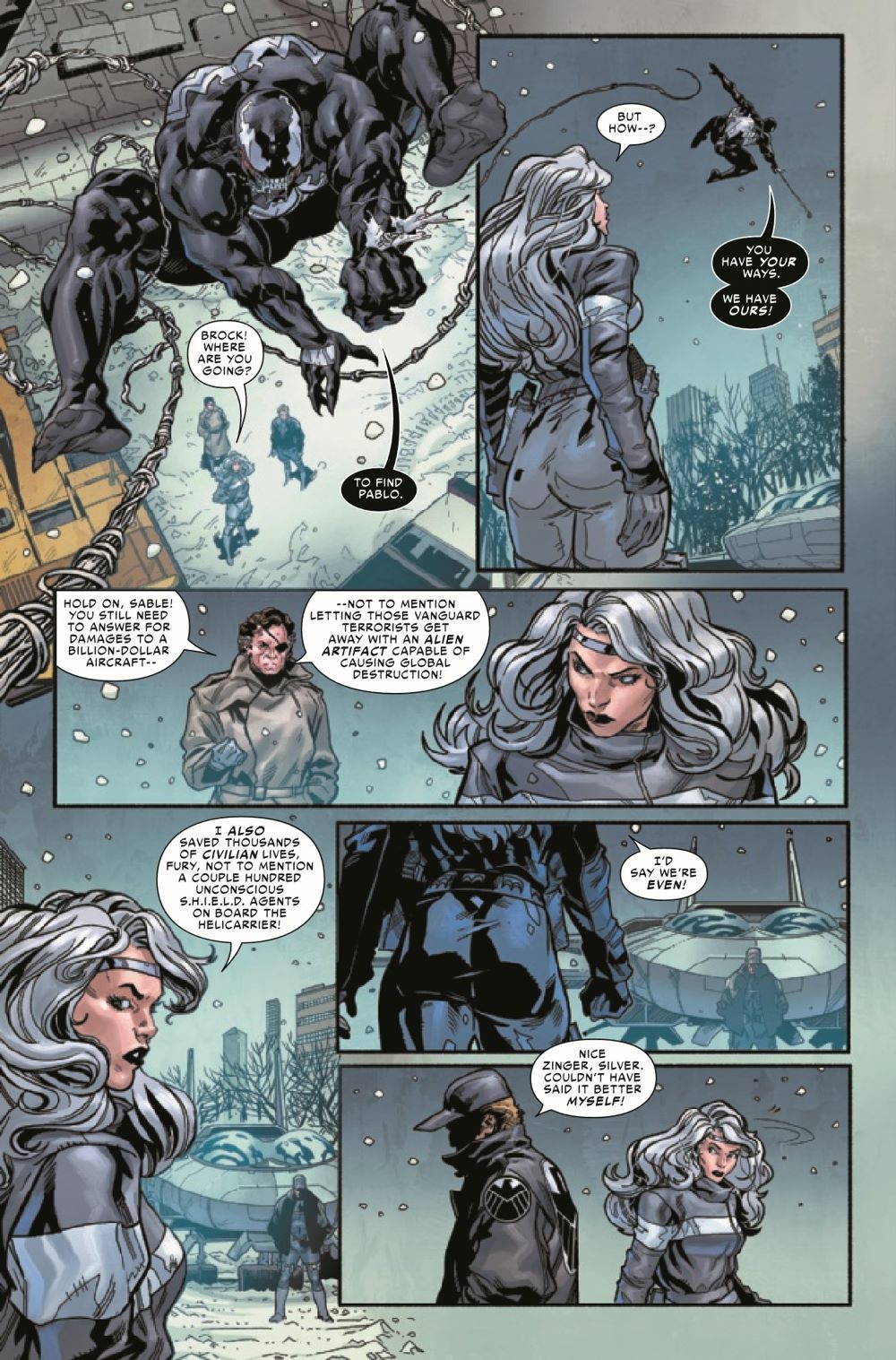 VENOM - AGENT OF S.H.I.E.L.D.?! VENOM has joined international super-spy SILVER SABLE's WILD PACK, but to stop planet-killing tech from falling into the wrong hands - they'll have to play by Nick Fury and S.H.I.E.L.D.'s rules! But when New York City falls under attack, Venom may be S.H.I.E.L.D.'s only hope! And there's a new player in the game - DOCTOR DOOM has his own plans for the tech - and for Venom!