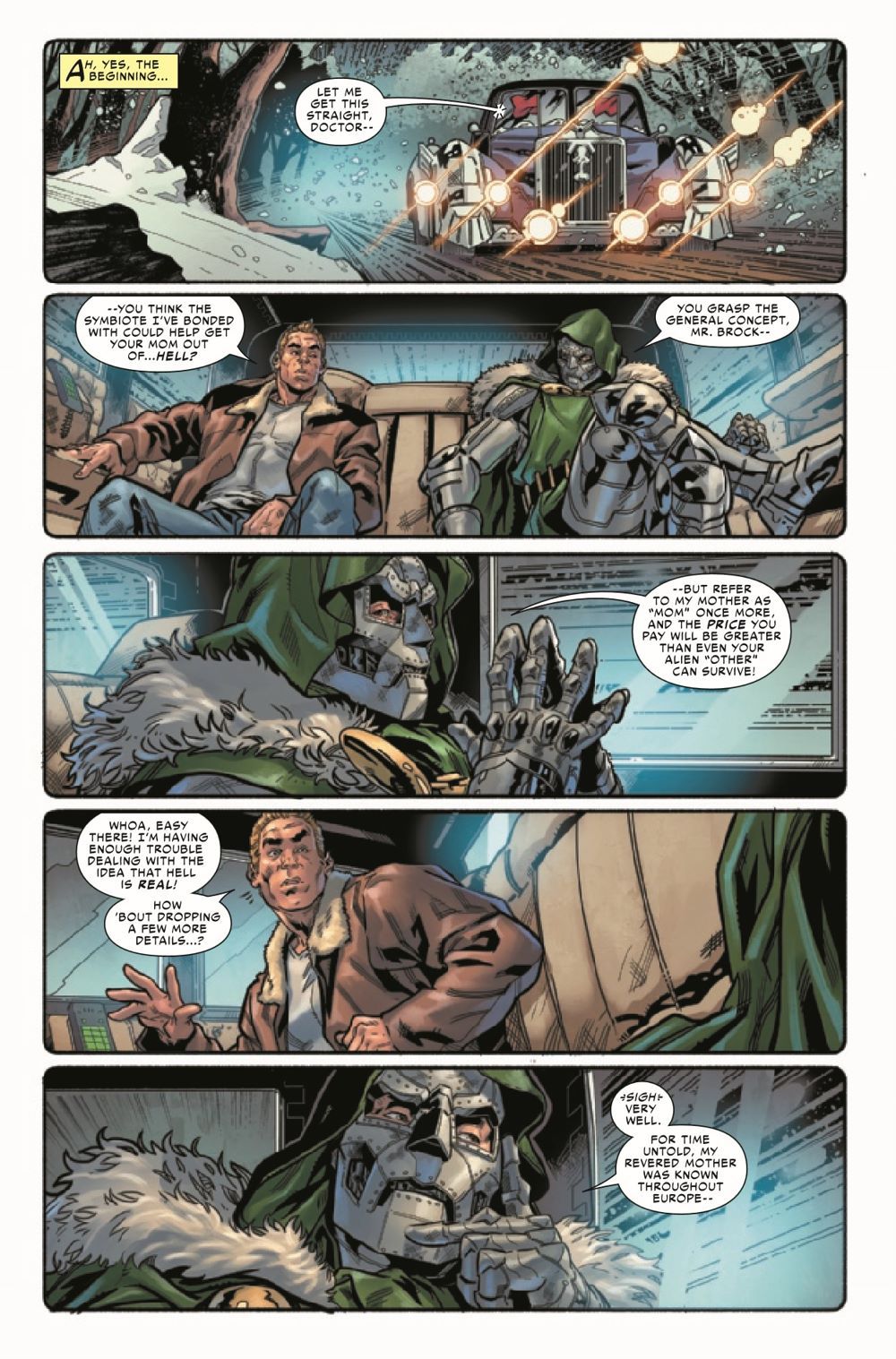Just when VENOM and SILVER SABLE's battle to stop planet-killing tech from falling into the wrong hands reaches its climax - a new player enters the game. DOCTOR DOOM has his own plans for the tech - and for EDDIE BROCK. Plans that will change Eddie and the symbiote FOREVER!