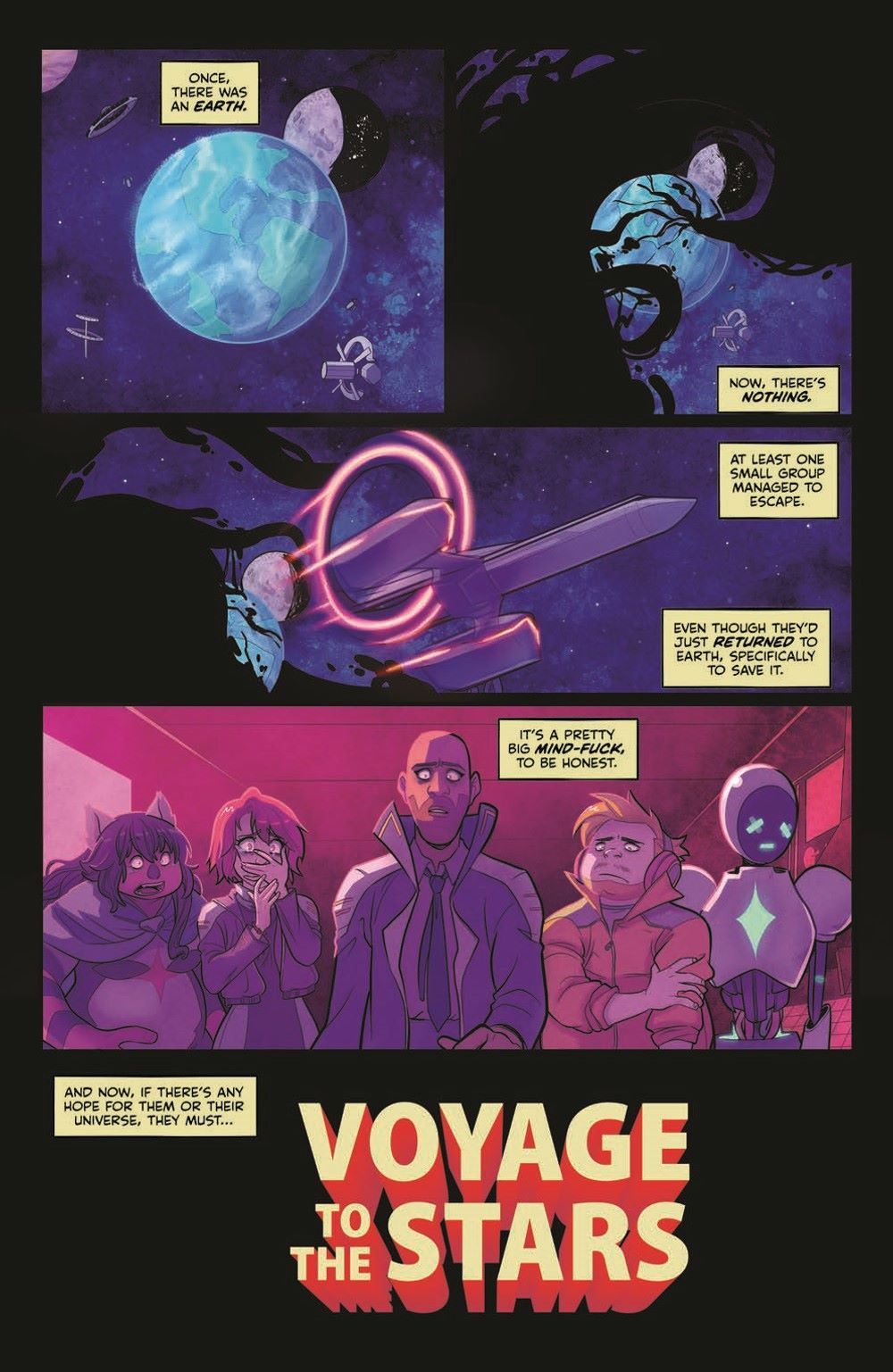 Earth is gone. Only one intrepid crew of misfits managed to escape, now determined and ambiguously destined to stop a growing, ancient evil from consuming the universe. Though stopping it may be tricky, as our heroes can't help but destroy just about every planet and species they come across. Kinda debatable who's the bigger threat.