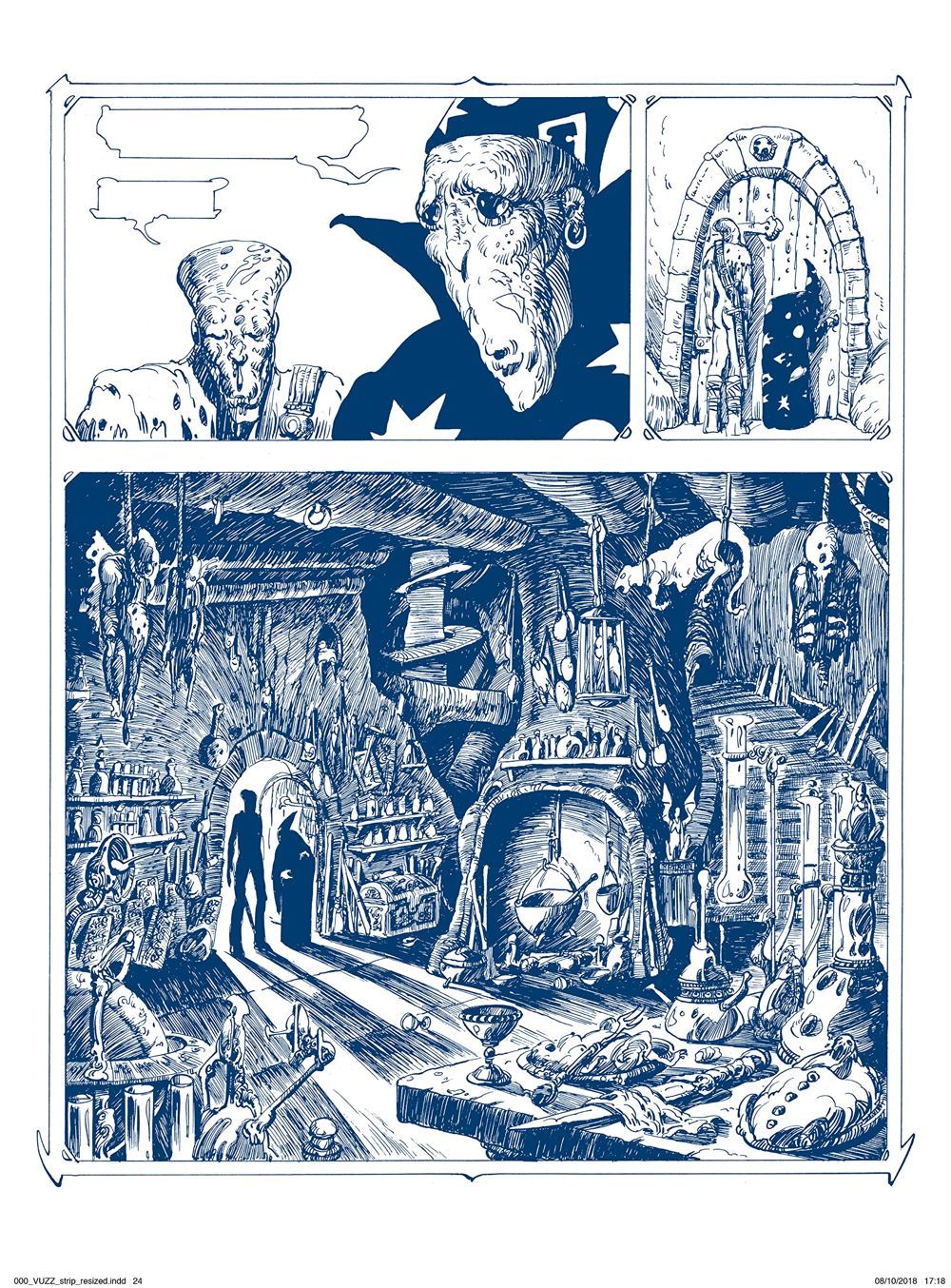 Vuzz is a warrior. A looter who has simple needs in life: to fight, to eat and to make love. Vuzz lives in a world where ruined cities are home to zombies, giant rabbits, and salacious wizards. A world where everything is desolation and uncertainties. A world where Vuzz can ultimately only count on himself. Which suits him just fine…Featured in stunning black and white, this story is deliberately offbeat and almost humorous; utilizing a stripped-down narration and minimalist illustrations.