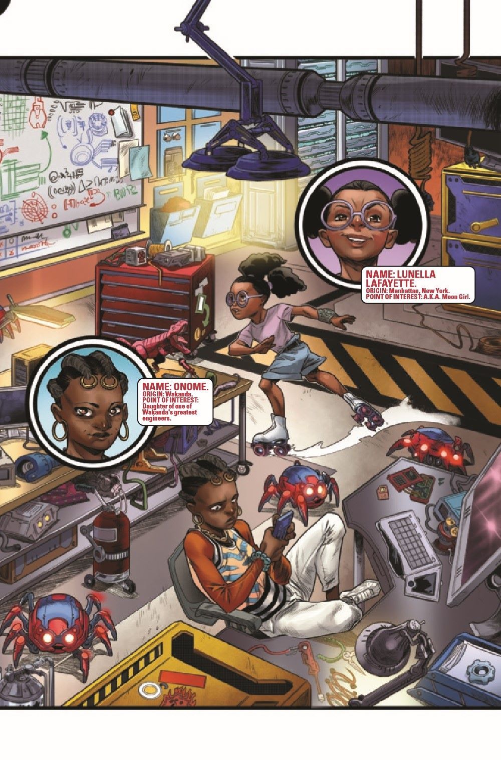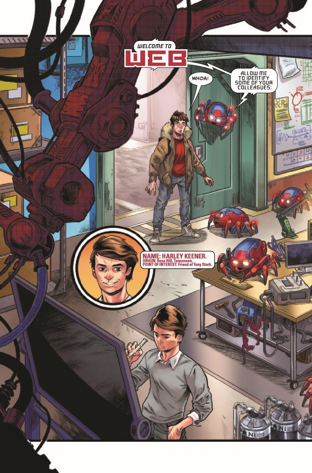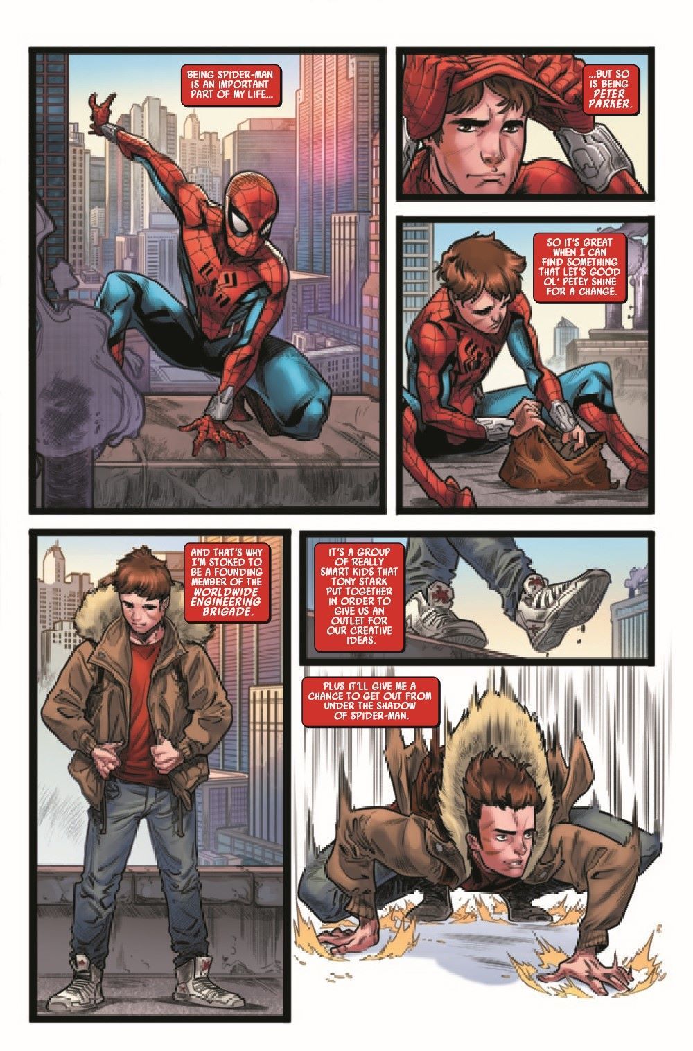 Peter Parker. Spider-Man. Scientist. Troublemaker? Thanks to none other than Tony Stark, a new scientific research station for the teenage heroes of the Marvel Universe has just been completed - and Spider-Man just got an invitation to join! Working alongside some of your favorite faces from the MU and a whole bunch of awesome new gadgets, and with Iron Man keeping an eye on the them, surely everything's going to go great for the heroes, right? ... Right? Face front, True Believers, and treat yourself to this first issue in an adventure of the WORLDWIDE ENGINEERING BRIGADE!