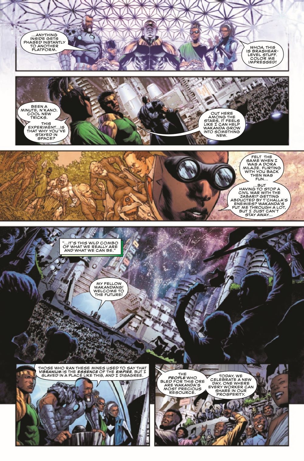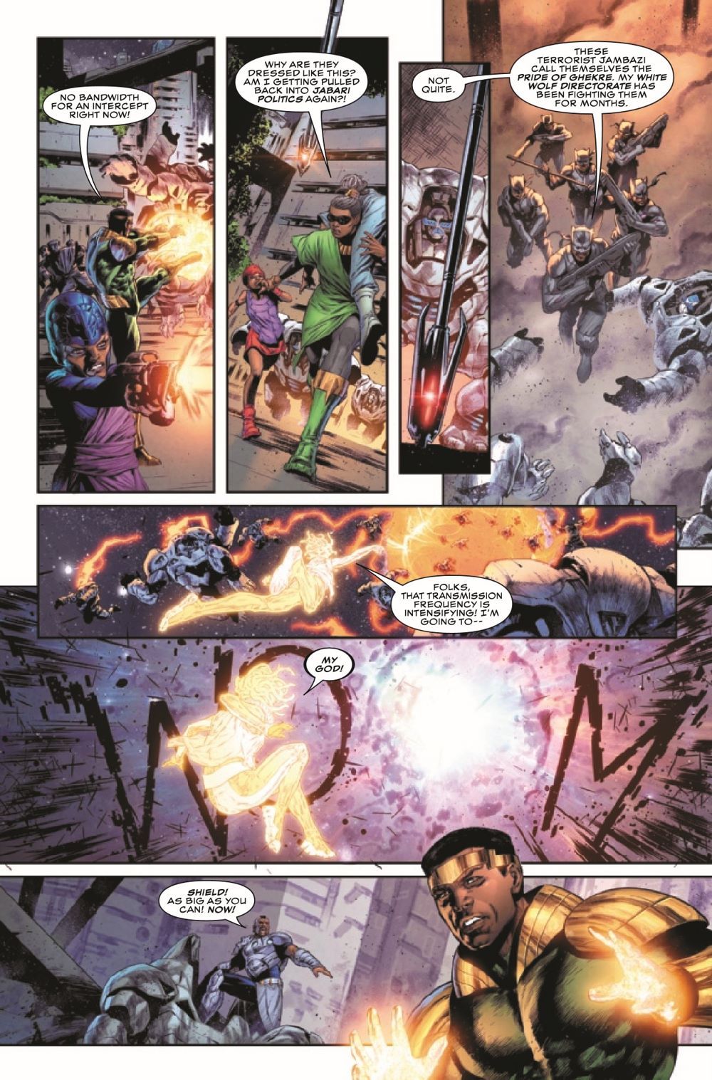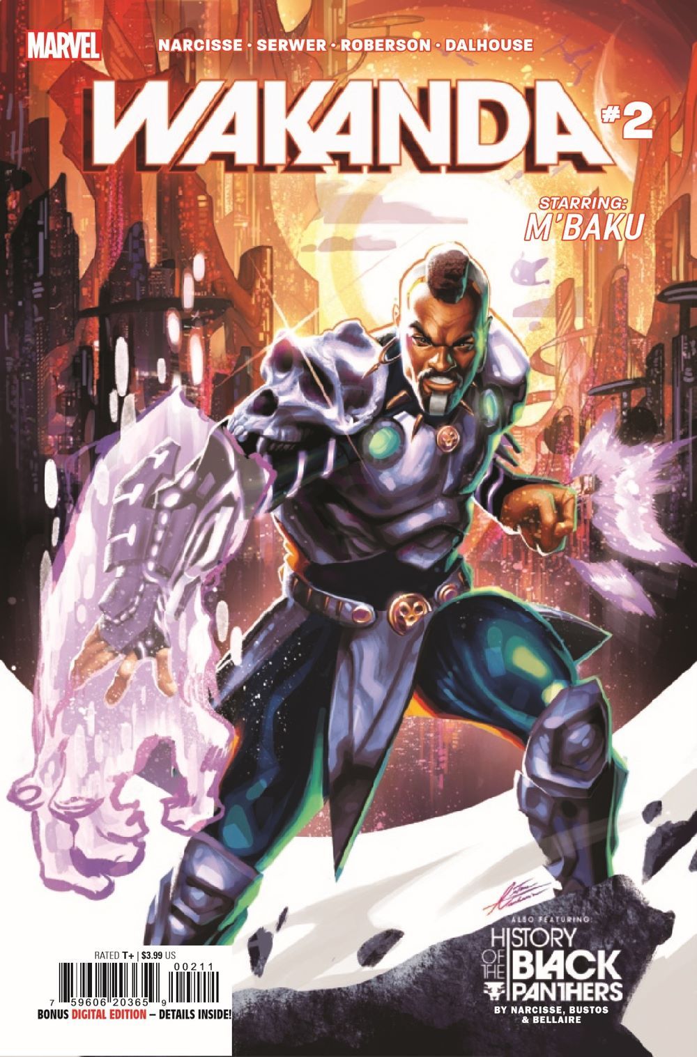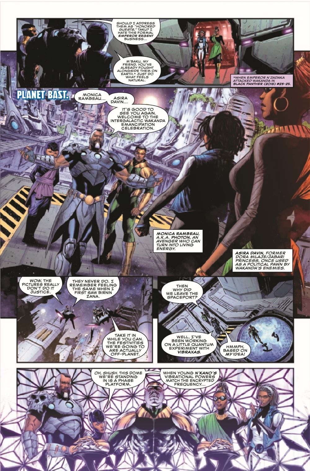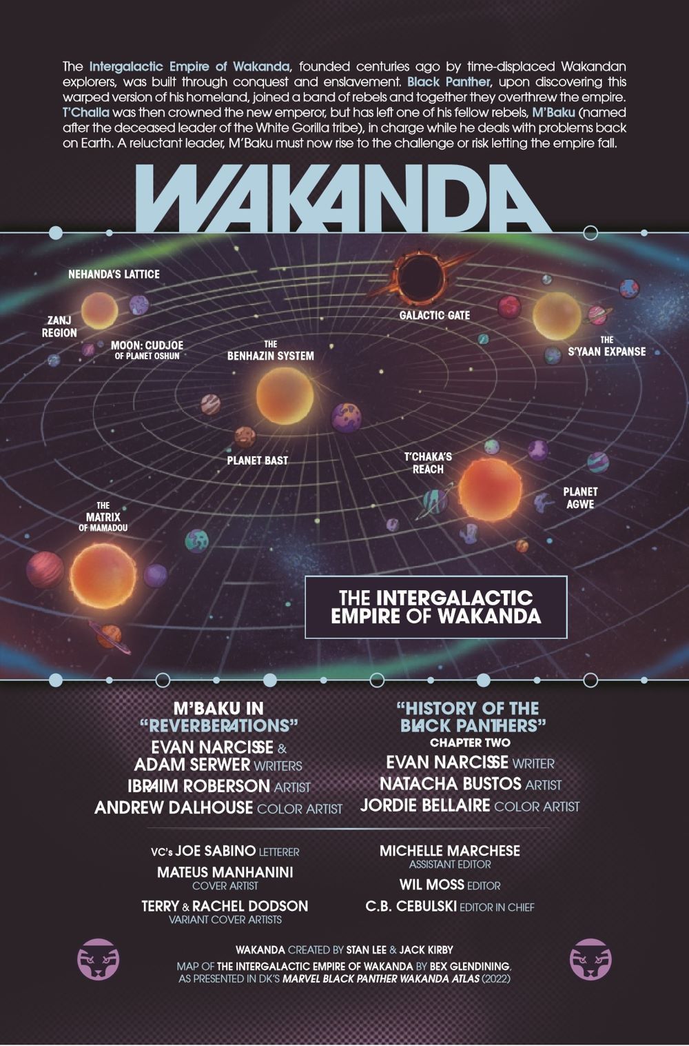 M'BAKU PROVES HIS WORTH! While T'Challa has been handling situations on Earth, M'Baku has acted as regent over the Intergalactic Empire. And when a foe from Wakanda's past threatens to destroy its future, M'Baku will prove why the cosmos were entrusted to him. Plus, Evan Narcisse and Natacha Bustos's definitive HISTORY OF THE BLACK PANTHERS continues!