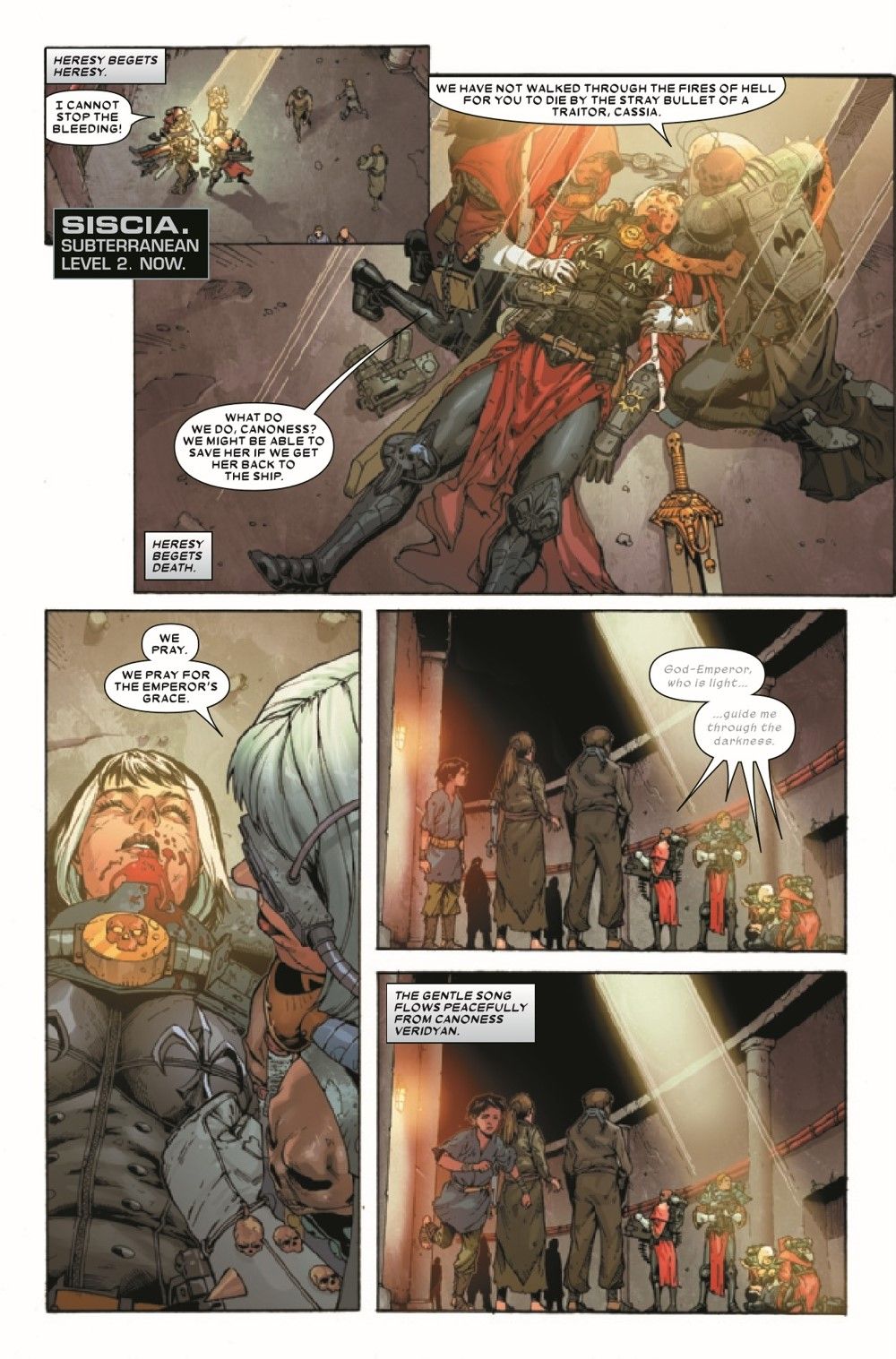 DAYS OF DEATH AND MIRACLES! A death in VERIDYAN'S ranks sends shock waves through the squad! Still, they travel deeper into the tunnels of Siscia...and only a miracle can save them now. But the Sisters' faith in the Emperor is never shaken - even in the face of CHAOS!