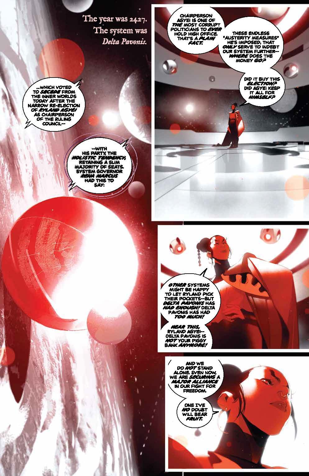 The action of the final arc heats up with Newdawn and Thierry sleuthing their way through a dangerous spy mission, as the past threatens to catch up with them. New revelations surface about Thierry-9's creation and Newdawn's motivations, all while they make a desperate gambit in the midst of their mission!