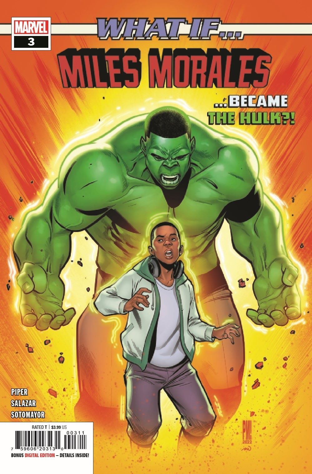 DON'T MAKE HIM ANGRY... What if…instead of being bitten by a genetically enhanced spider, Miles Morales was blasted by gamma radiation and transformed into THE INCREDIBLE HULK?! Is Miles man or monster? Or maybe he's just a kid trying to live a normal life…school, dates, a rampaging ABOMINATION… Miles may be the strongest there is, but that doesn't mean growing up will be easy.