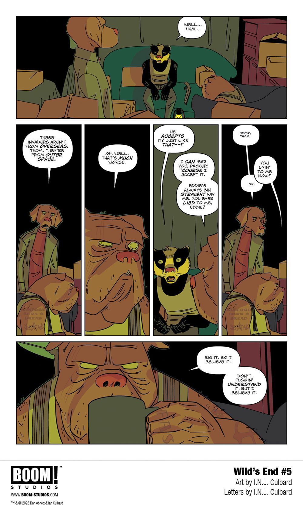 The crew of The Merry Beet finally have some real firepower on their side–something that can really turn the tide of the invasion! But getting help from a reclusive ally in town will be tough with the alien lamp posts always watching…