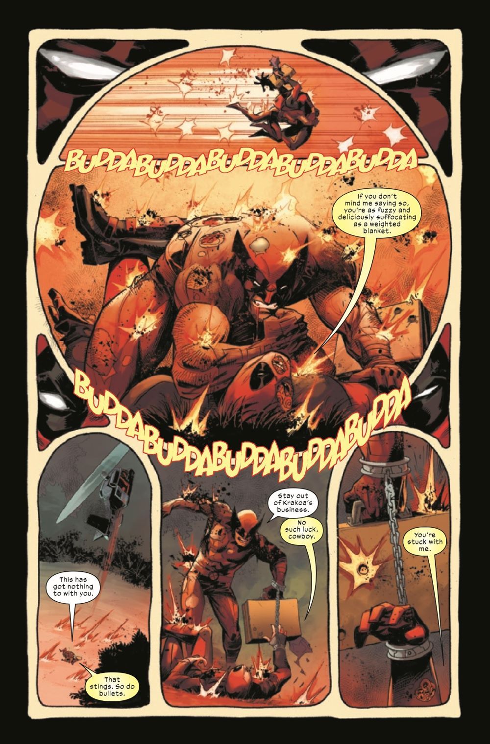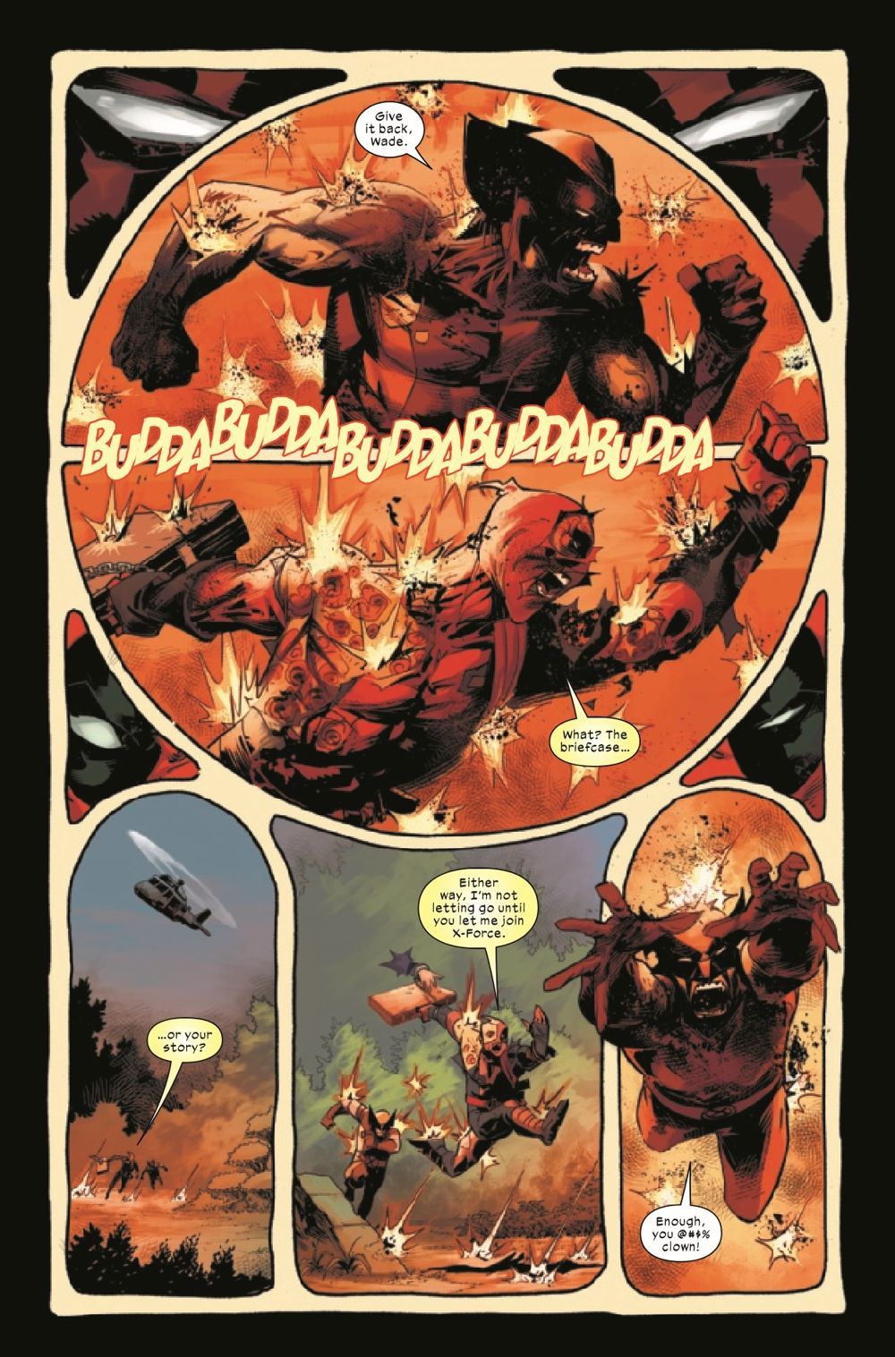 DEEPER INTO DANGER DANGER DANGER! Outnumbered and surrounded, WOLVERINE unleashes his berserker rage, and DEADPOOL embraces his deadly fighting skills in a last ditch effort to save mutant lives. But what's with all the ROBOT X-MEN, and what do they have to do with the X-DESK?