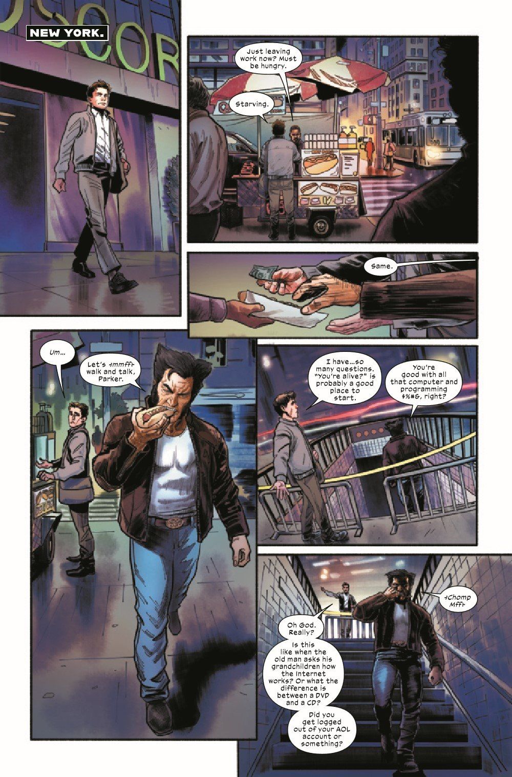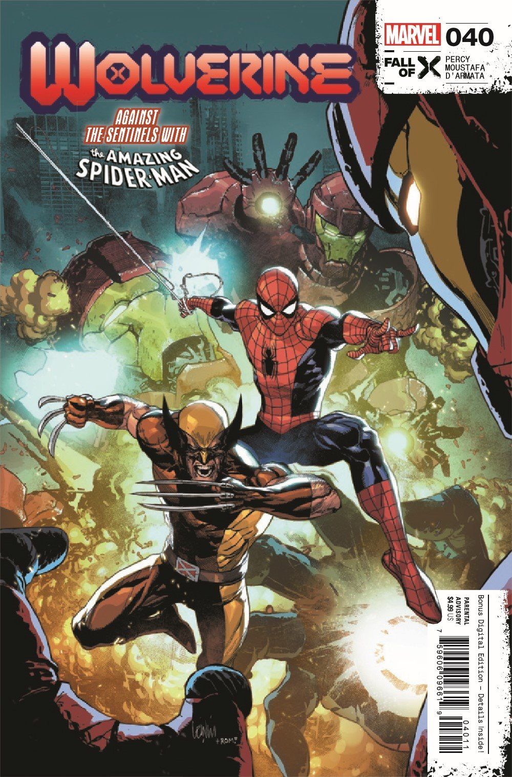 STARK SENTINELS GET SPIDER-SENSES TINGLING! LAST MUTANT STANDING - FINALE! LOGAN's journey across the ORCHIS-controlled globe brings him to New York City - and a reunion with that great non-mutant super hero: SPIDER-MAN! But will the ol' PARKER LUCK help WOLVERINE against the wrath of the STARK SENTINELS or put the fall in FALL OF X?!