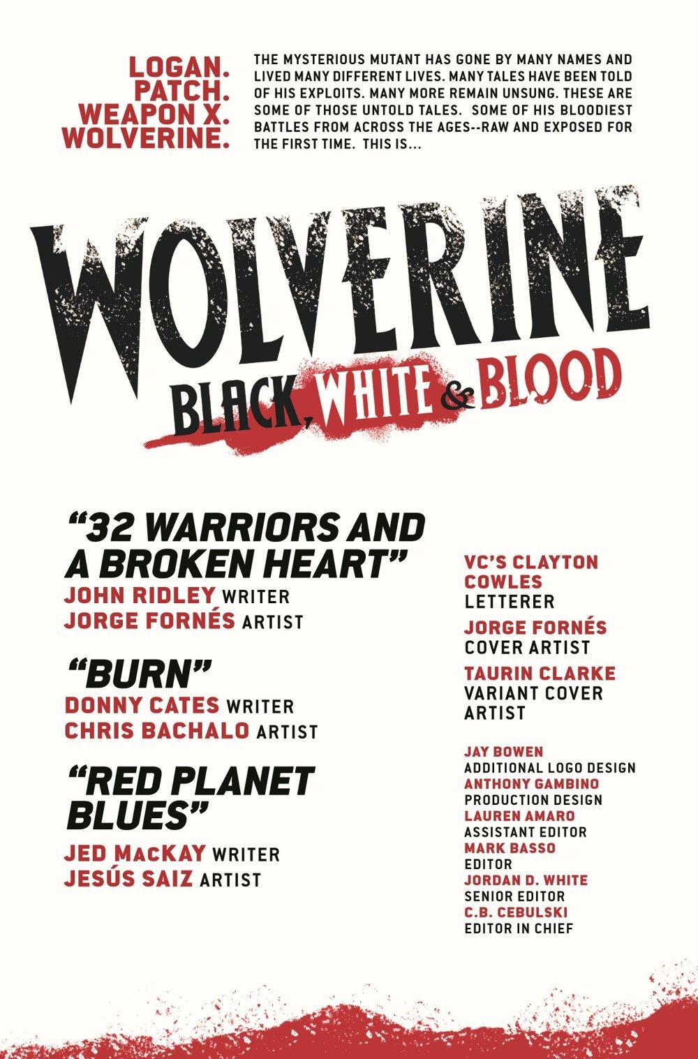 THE BEST THERE IS BY THE BEST THERE ARE! The groundbreaking series continues! Thrill to the Marvel Comics debut of Oscar winner JOHN RIDLEY 12 Years a Slave, The American Way) as he and JORGE FORNÉS bring LOGAN to Japan, where he will question his honor as he clashes blades with the SILVER SAMURAI! Then, it's back to his X-FORCE days with JED MacKAY and JES S SAIZ, as WOLVERINE must stop A.I.M.'s plot for the red planet! And, nothing can prepare you for the unstoppable team-up of DONNY CATES and CHRIS BACHALO as Wolverine has a run-in with...COSMIC GHOST RIDER?!