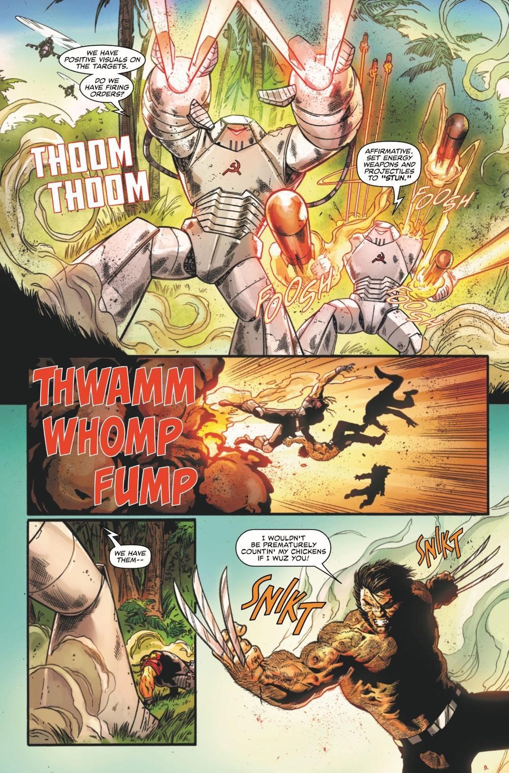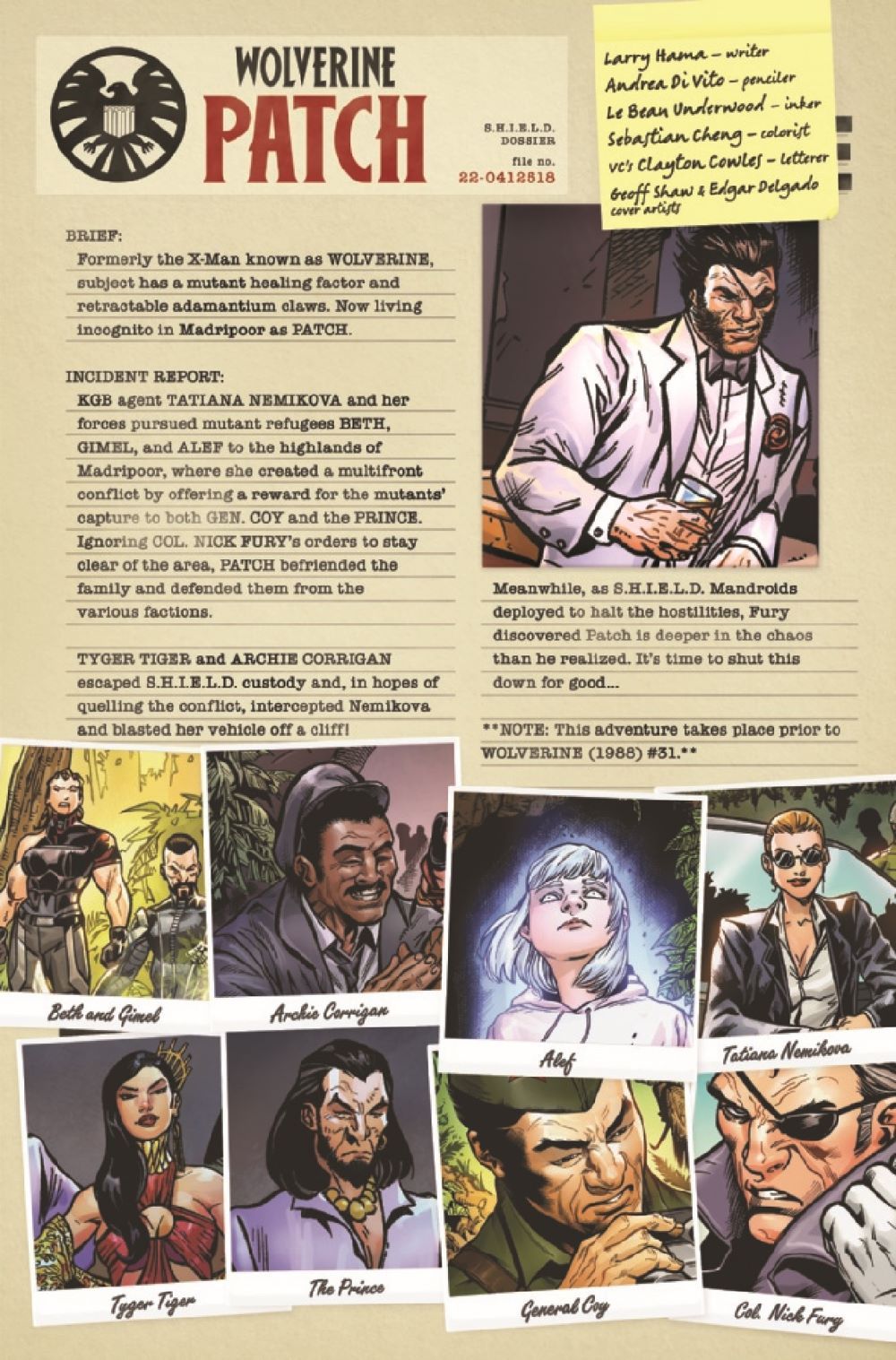 LAW'S OUT, CLAWS OUT! S.H.I.E.L.D. makes landfall in MADRIPOOR to put an end to the jungle warfare between COY, NEMIKOVA, and the KRASNYS! But will even their MANDROID battle suits be enough to quell the conflict? NICK FURY may lay down the law, but PATCH only plays by his own rules…
