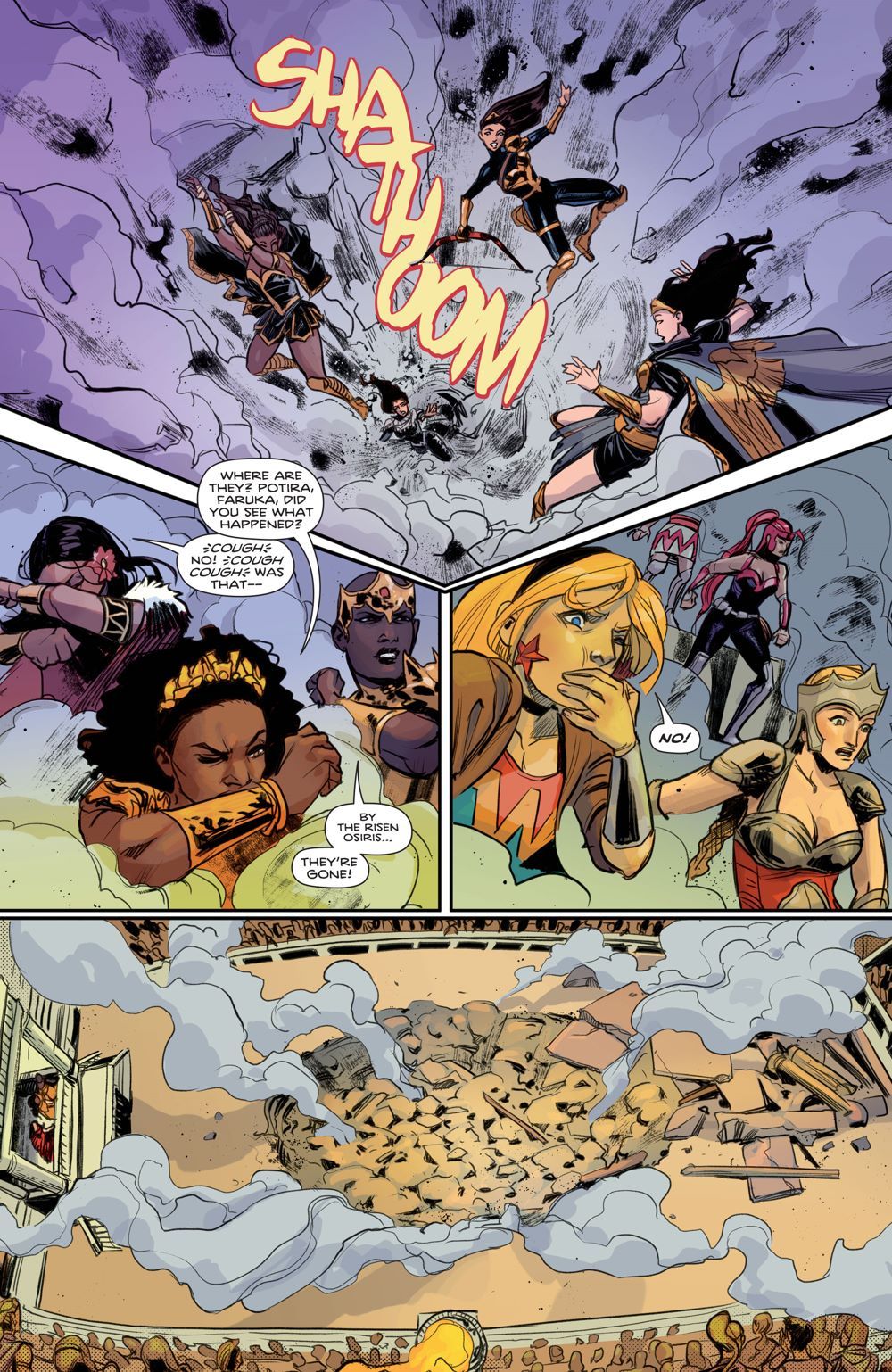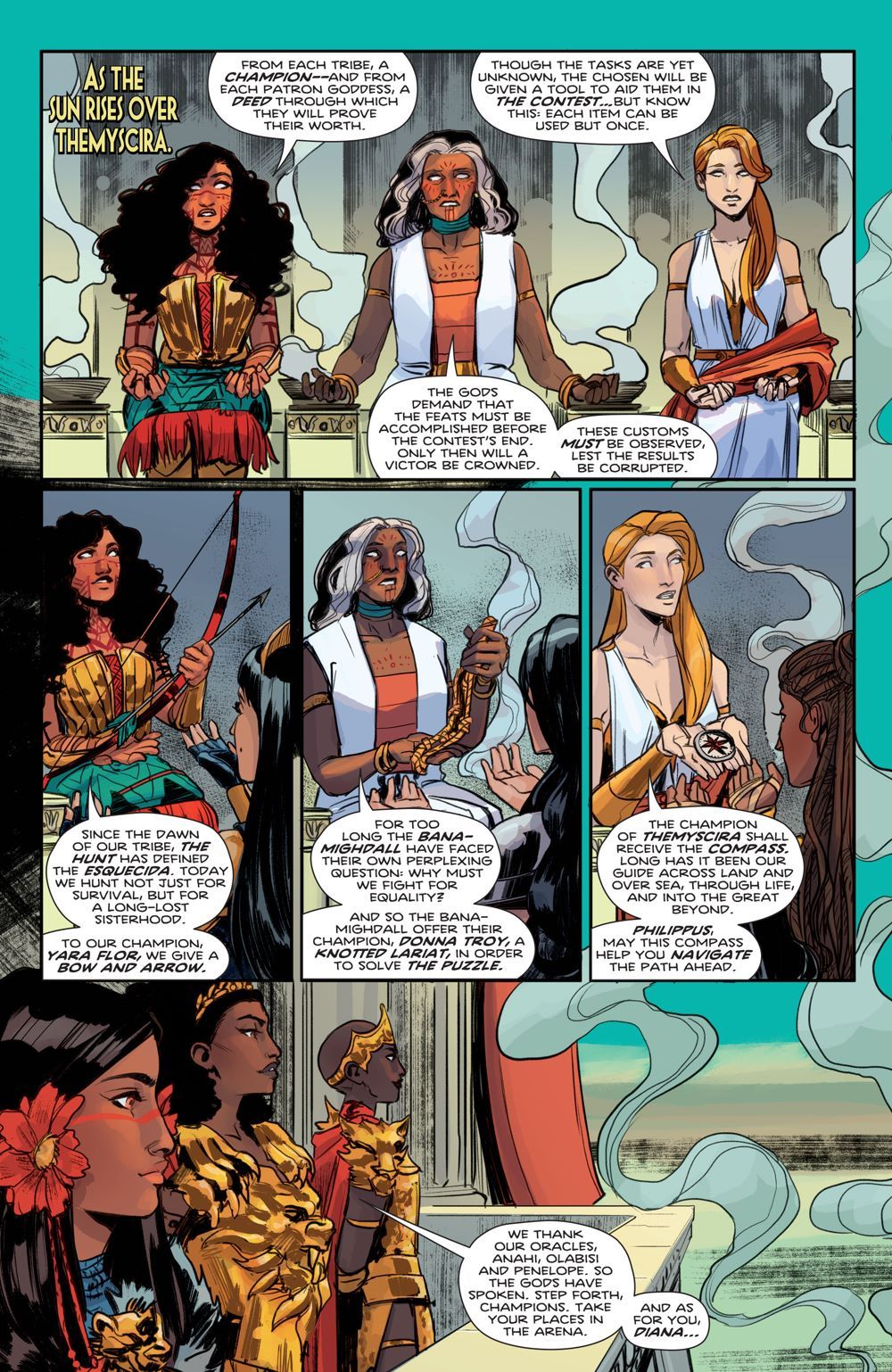 "Trial of the Amazons" part five! Tensions rise as the tribes compete with one another to determine the future of the Amazons. But a lot more than just glory is on the line—immortality is too! Little do they know, someone is pulling everyone's strings from behind Doom's Doorway. Who could it be? Find out in this jam-packed issue!