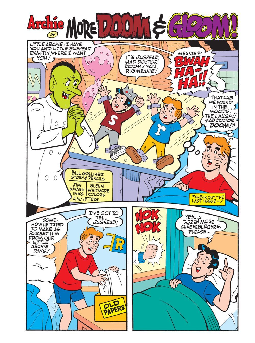TWO BRAND NEW STORIES! First, in "More Doom and Gloom," Archie can't shake the feeling that something strange is happening in Riverdale after he and Jughead come across a mysterious lab in the woods. Then it hits Archie: he remembers that lab from childhood—it belongs to the evil Mad Doctor Doom! He also remembers the two children who foiled his plans for world domination in the past—but will they be able to stop him this time?