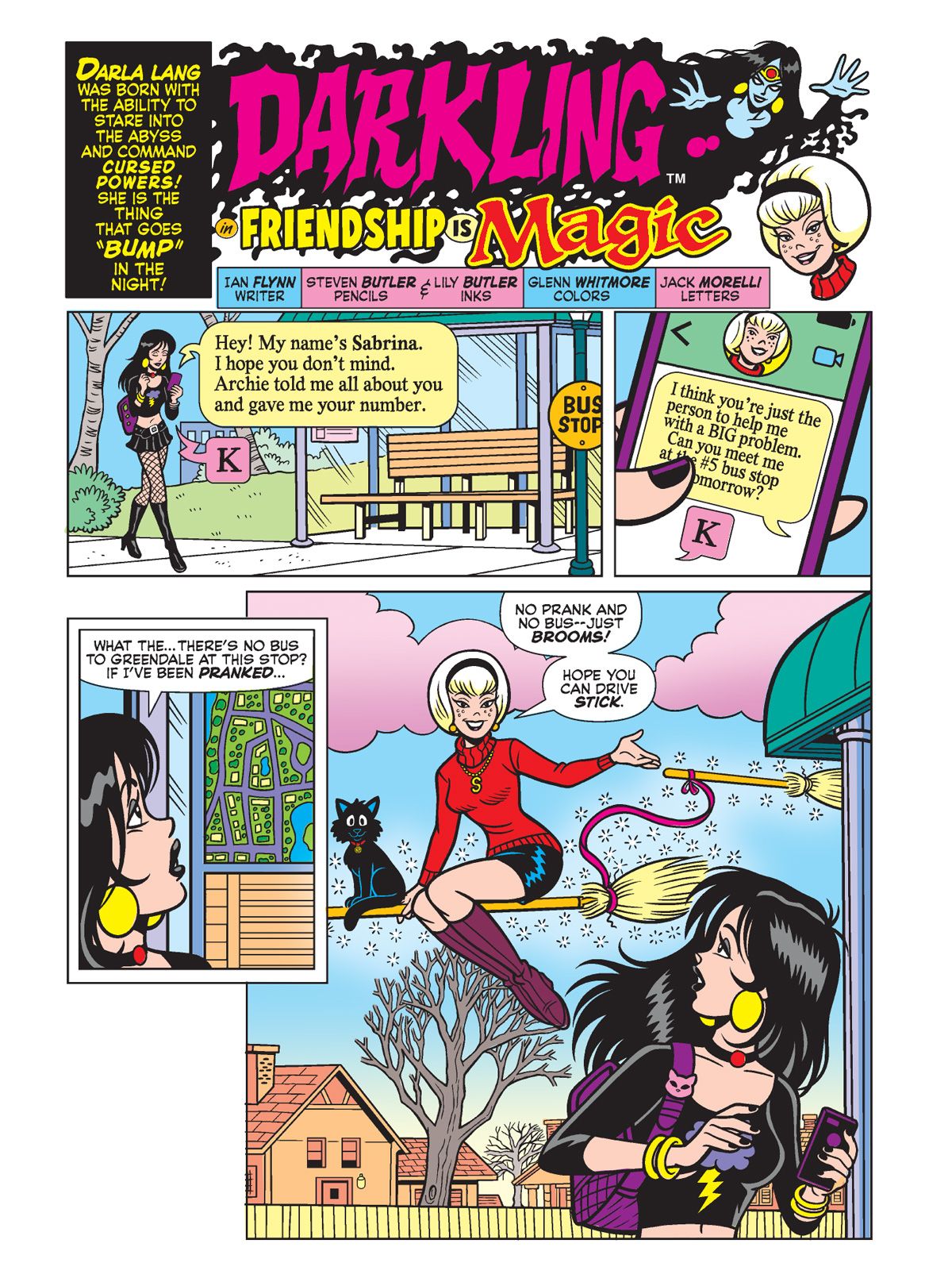Then, in "Friendship is Magic," superhero Darla Lang, aka DARKLING, comes face-to-face with another magically-powered teen: Sabrina the Teenage Witch! Sabrina's got a problem; a portal has opened up in her aunts' house and she has to get rid of it before she lets evil in. Will their combined power do the trick?