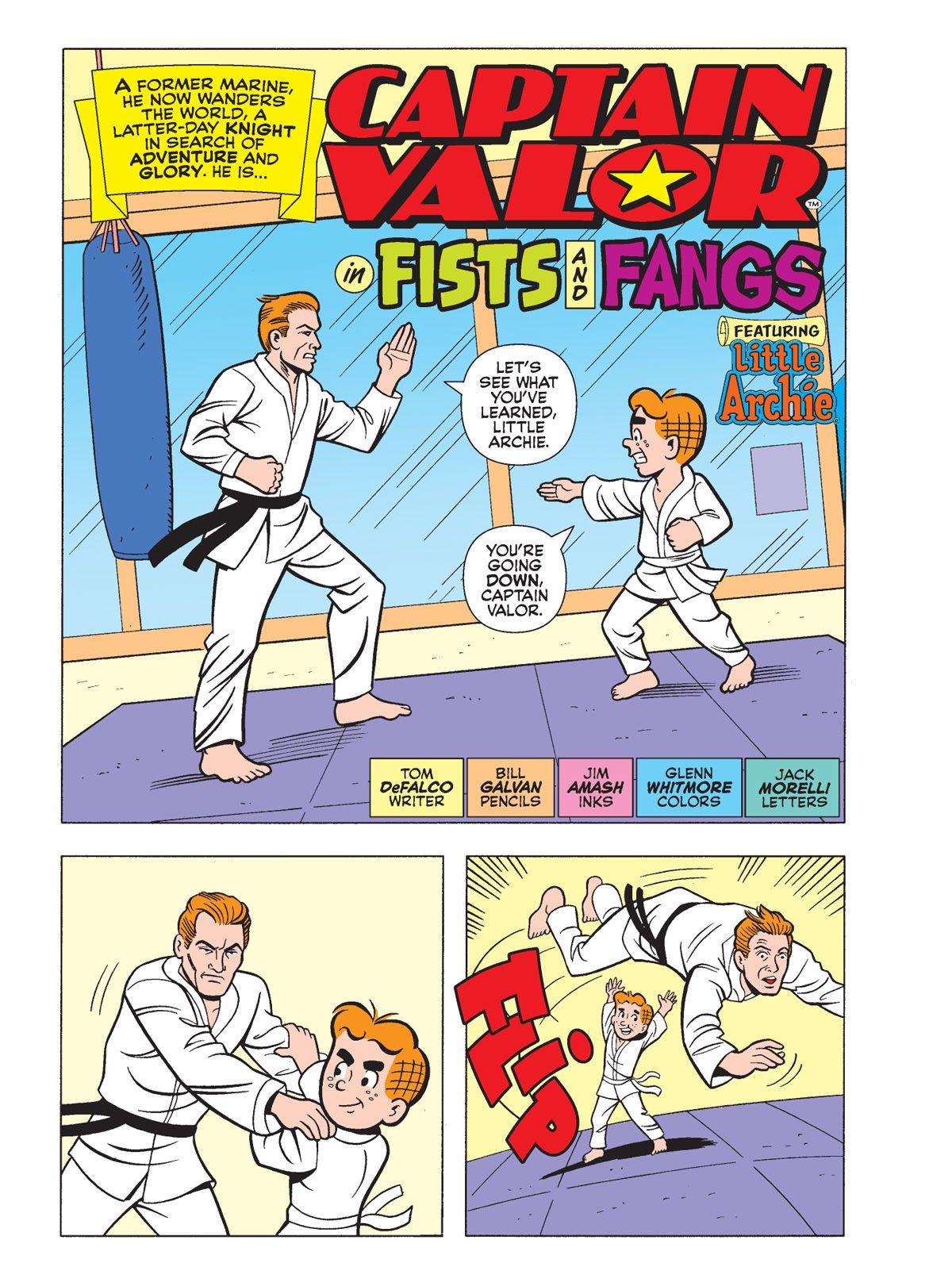 TWO BRAND NEW STORIES! Captain Commando is in Riverdale once more, and he's becoming quite the summer sensation! Then, Captain Valor teaches Little Archie how to stand up to bullies with his martial arts expertise!