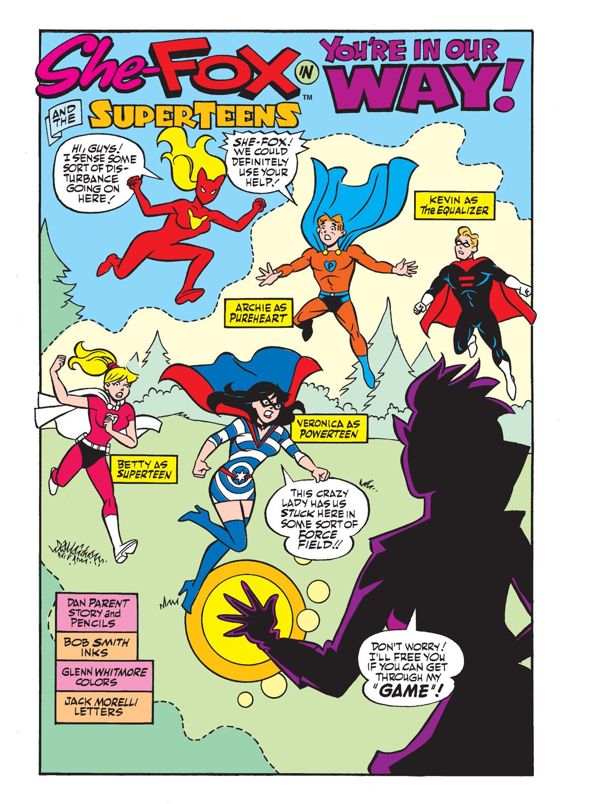 TWO BRAND NEW STORIES! While investigating a "haunted mansion" with Jake Chang, Archie becomes trapped within the mysterious dimension known as the Topsy Turvey in this fun riff on Stranger Things. Then, the Superteens and She-Fox must take on a gauntlet created by an evil villainess!