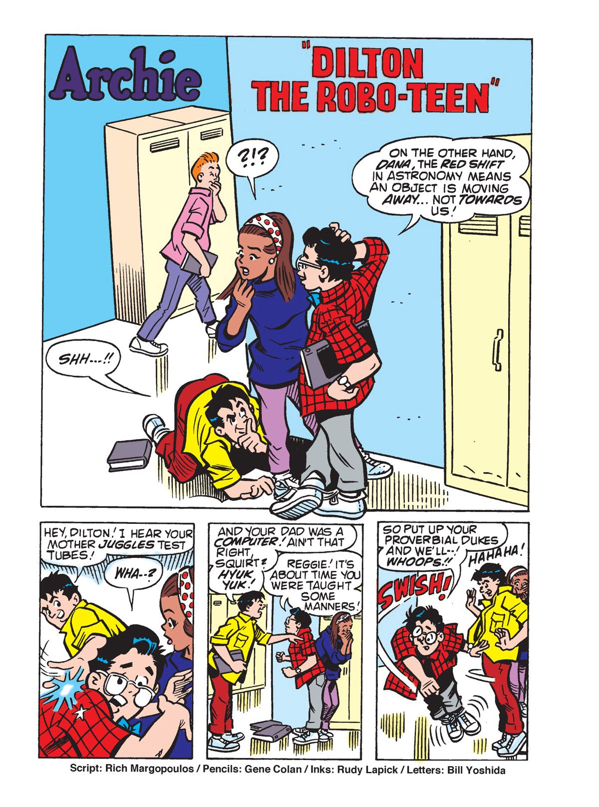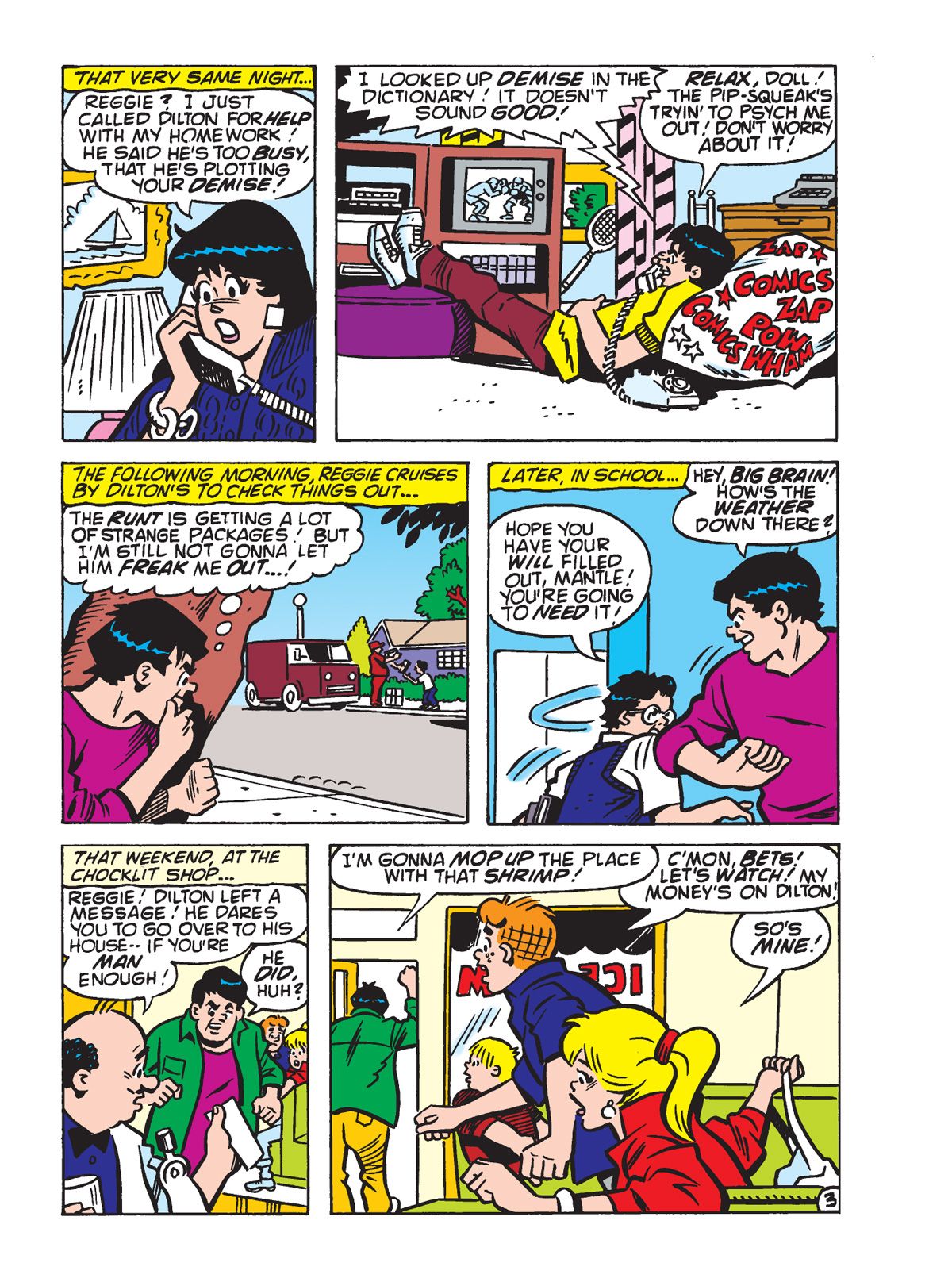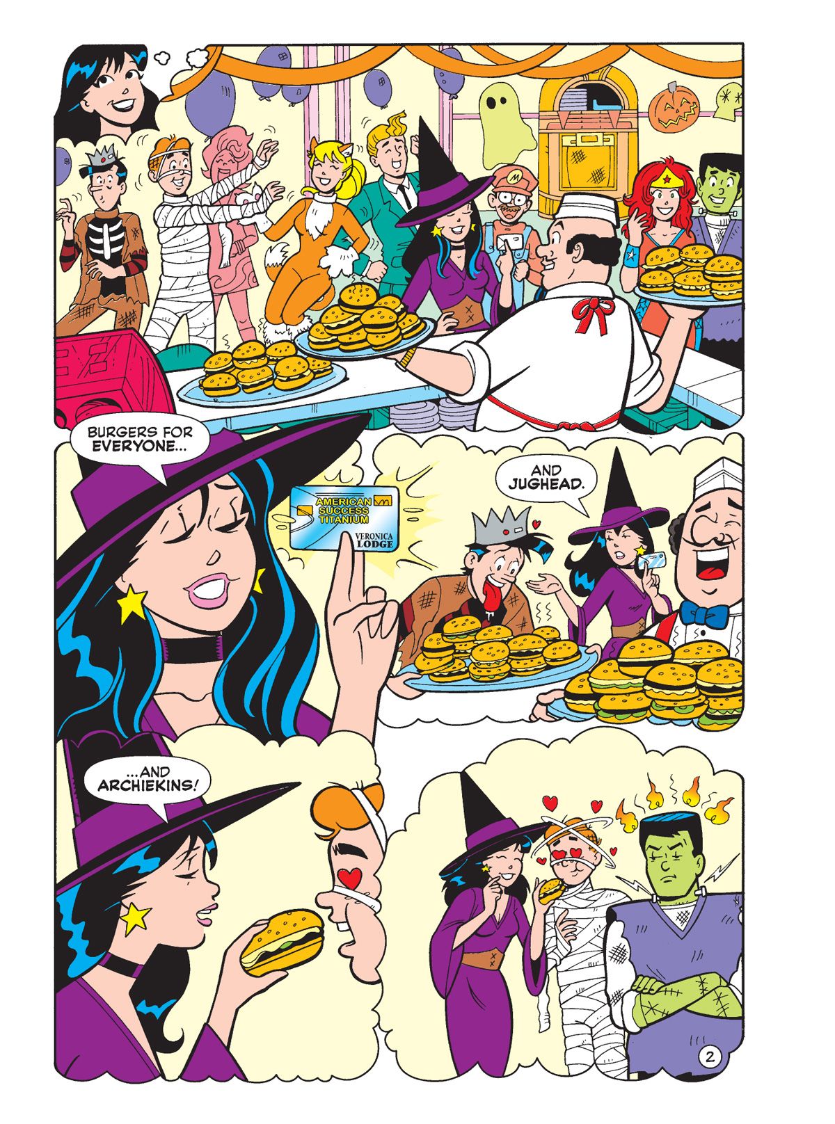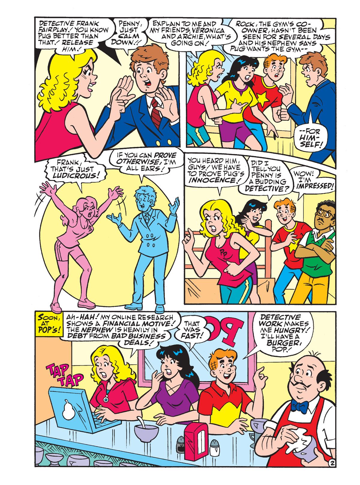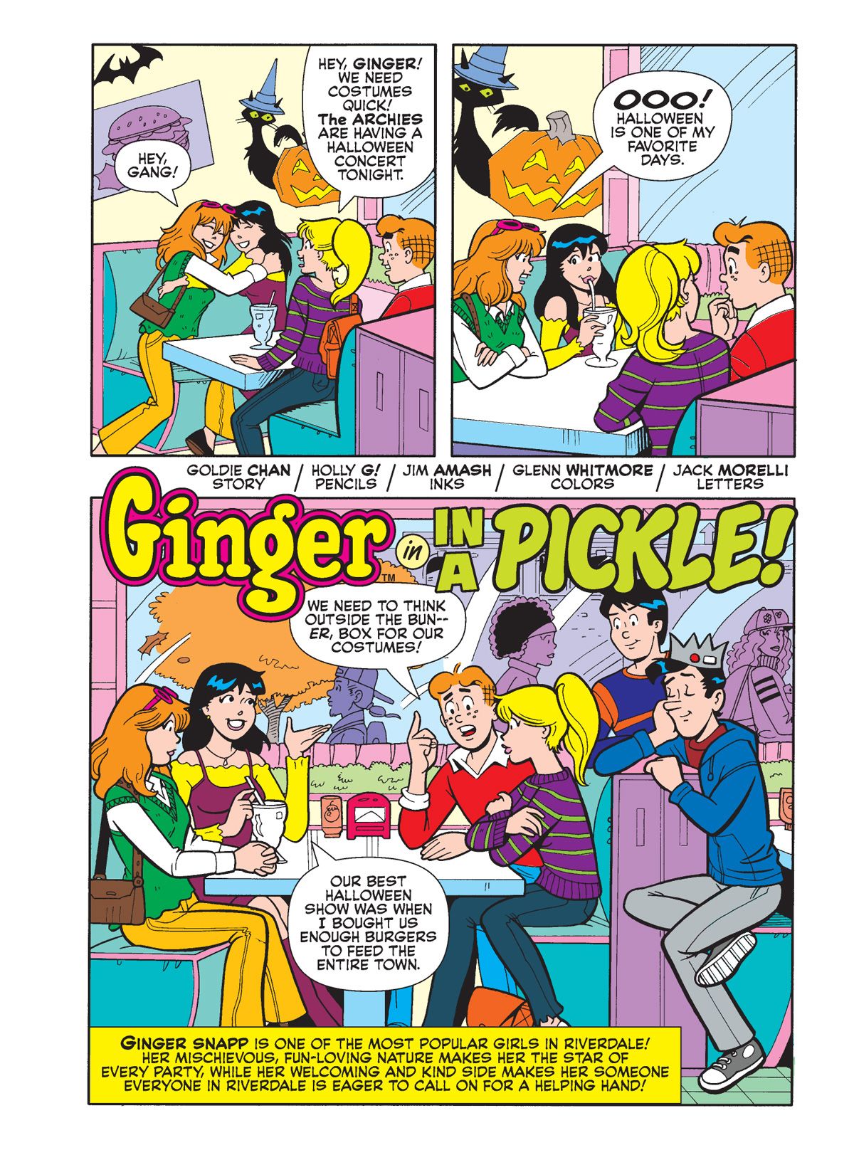 TWO BRAND NEW STORIES! Ginger Snapp visits Pop's Chock'lit Shoppe on the eve of Halloween to help Betty & Veronica with costume ideas. As different Riverdale folks stop by, they remember a particular Halloween-related incident around Pop's food item. Then, when Penny's boxing instructor, Pug, is charged with a gym owner's disappearance she teams up with Veronica and Archie to prove him innocent. Will the three be victorious or wind up down for the count themselves?