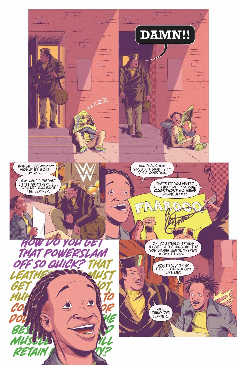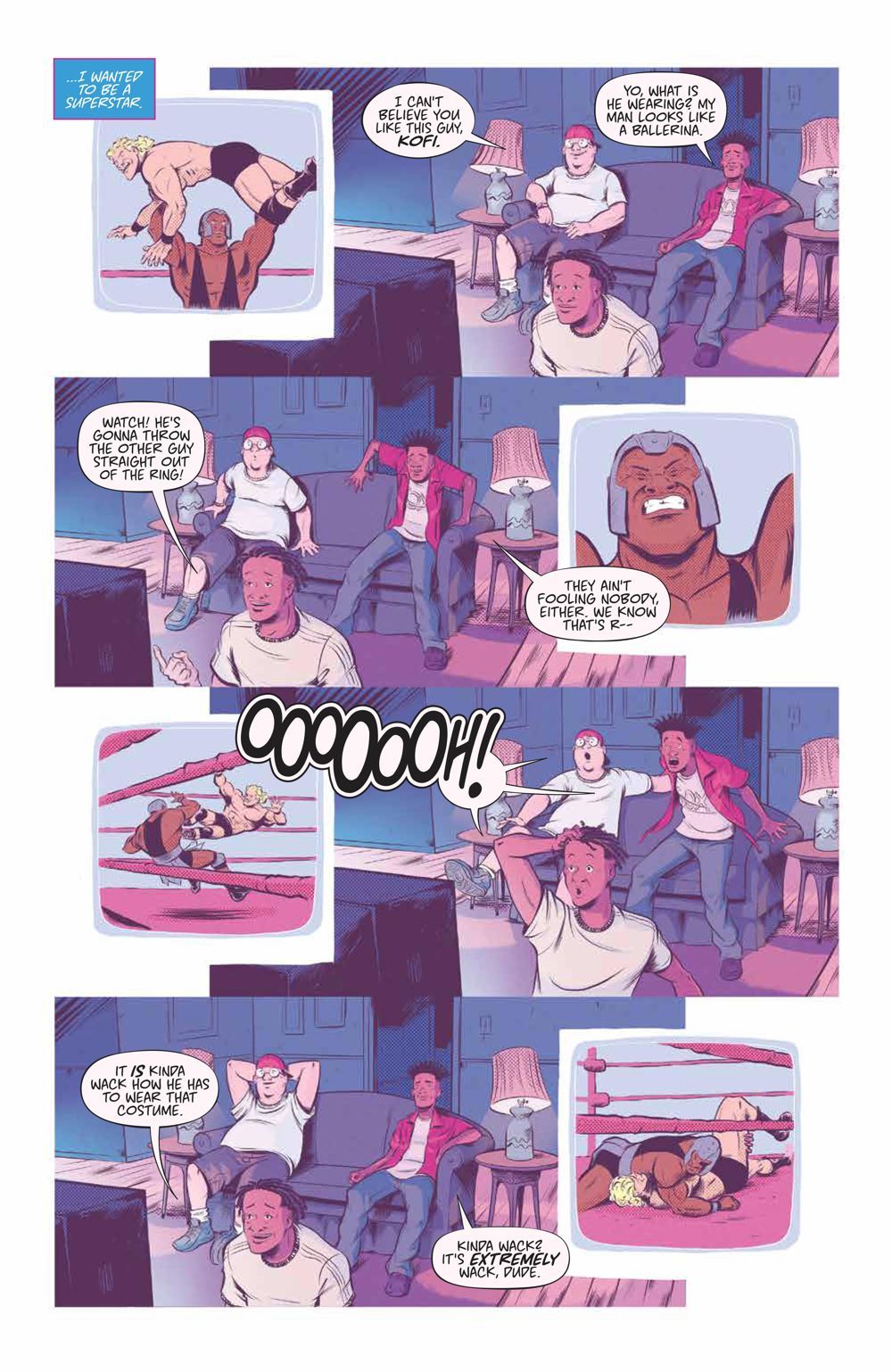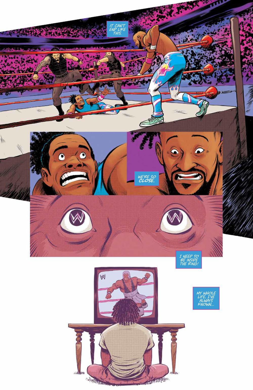 NEW SERIES. Who are The New Day? Kofi. Xavier. Big E. Six-time. W.W.E. Tag. Team. Champions! The. Longest. Reign. In. W.W.E. History! You know the matches. You know the catchphrases. You think you know The New Day… but now discover the origins and struggles of these three WWE Superstars before that fateful day when they realized that they're stronger together than apart and seize their place in WWE history. Writers Evan Narcisse (Rise of The Black Panther) and Austin Walker (Friends At The Table) (tag) team up with artist Daniel Bayliss (Mighty Morphin Power Rangers) to reveal the untold story behind one of the greatest tag teams of all time!