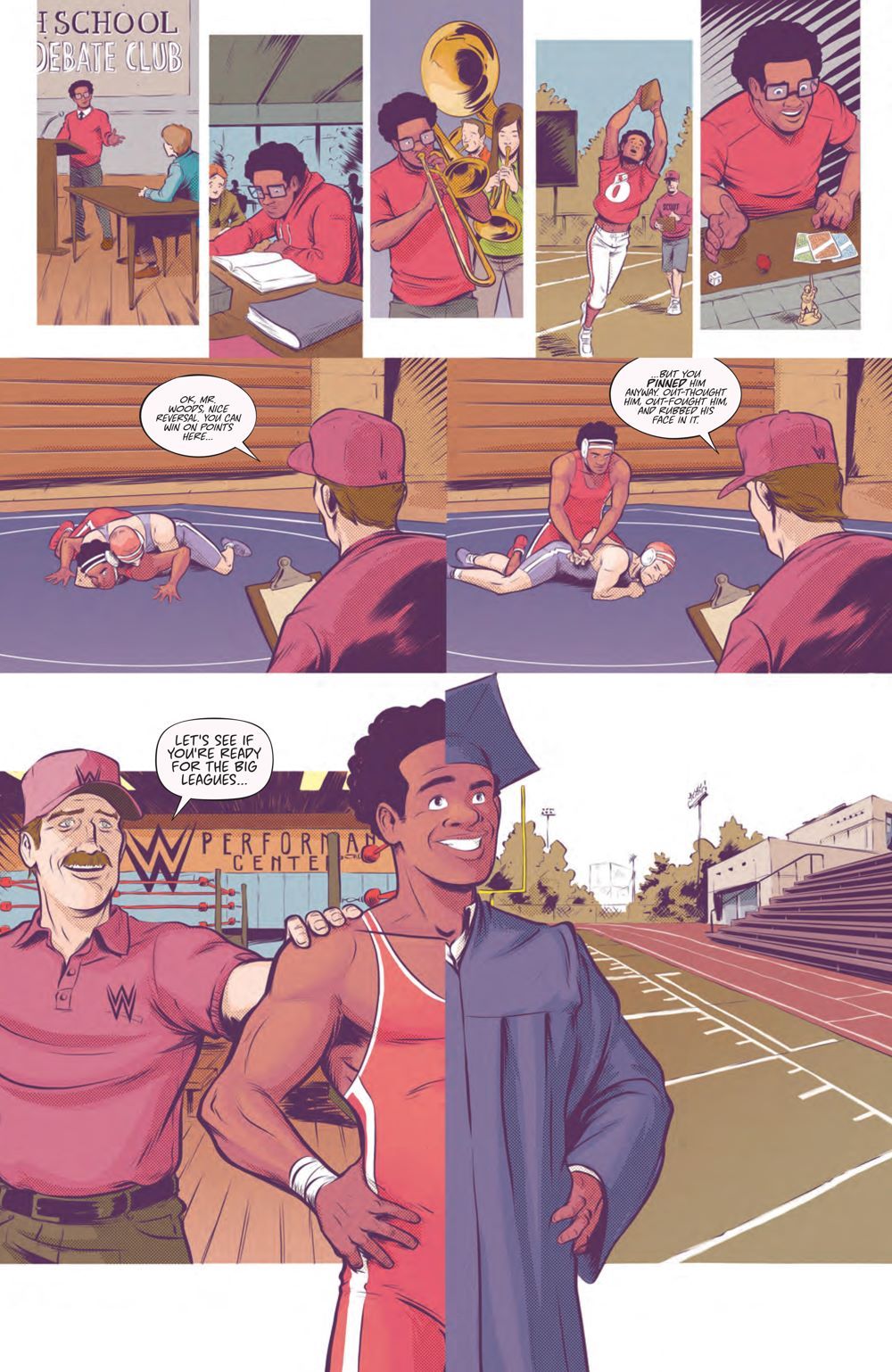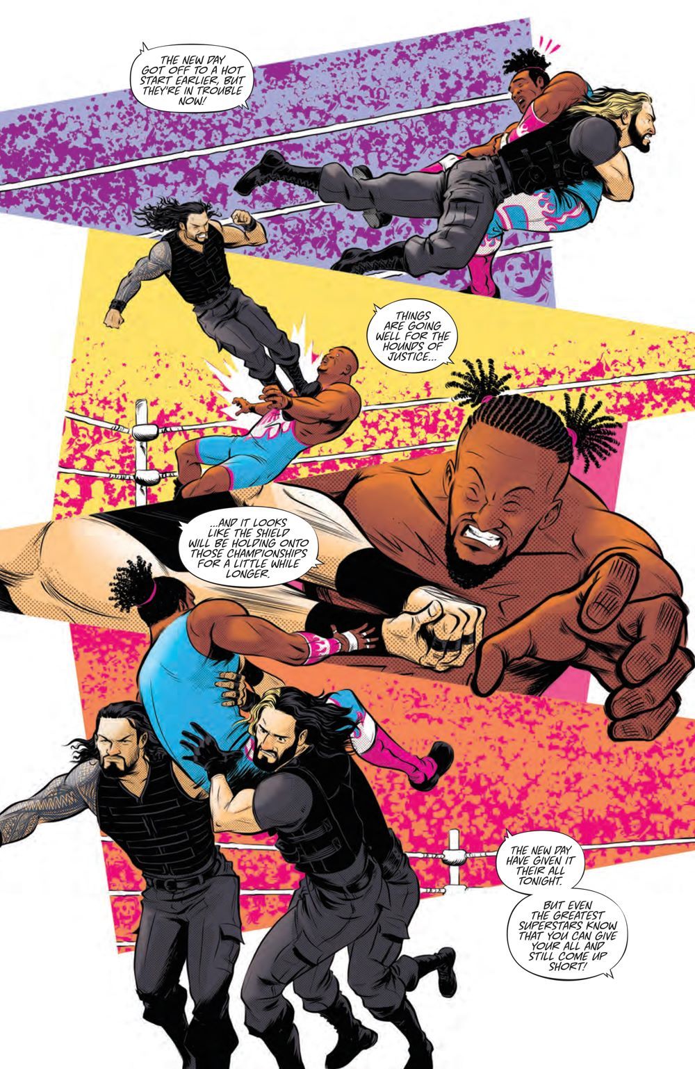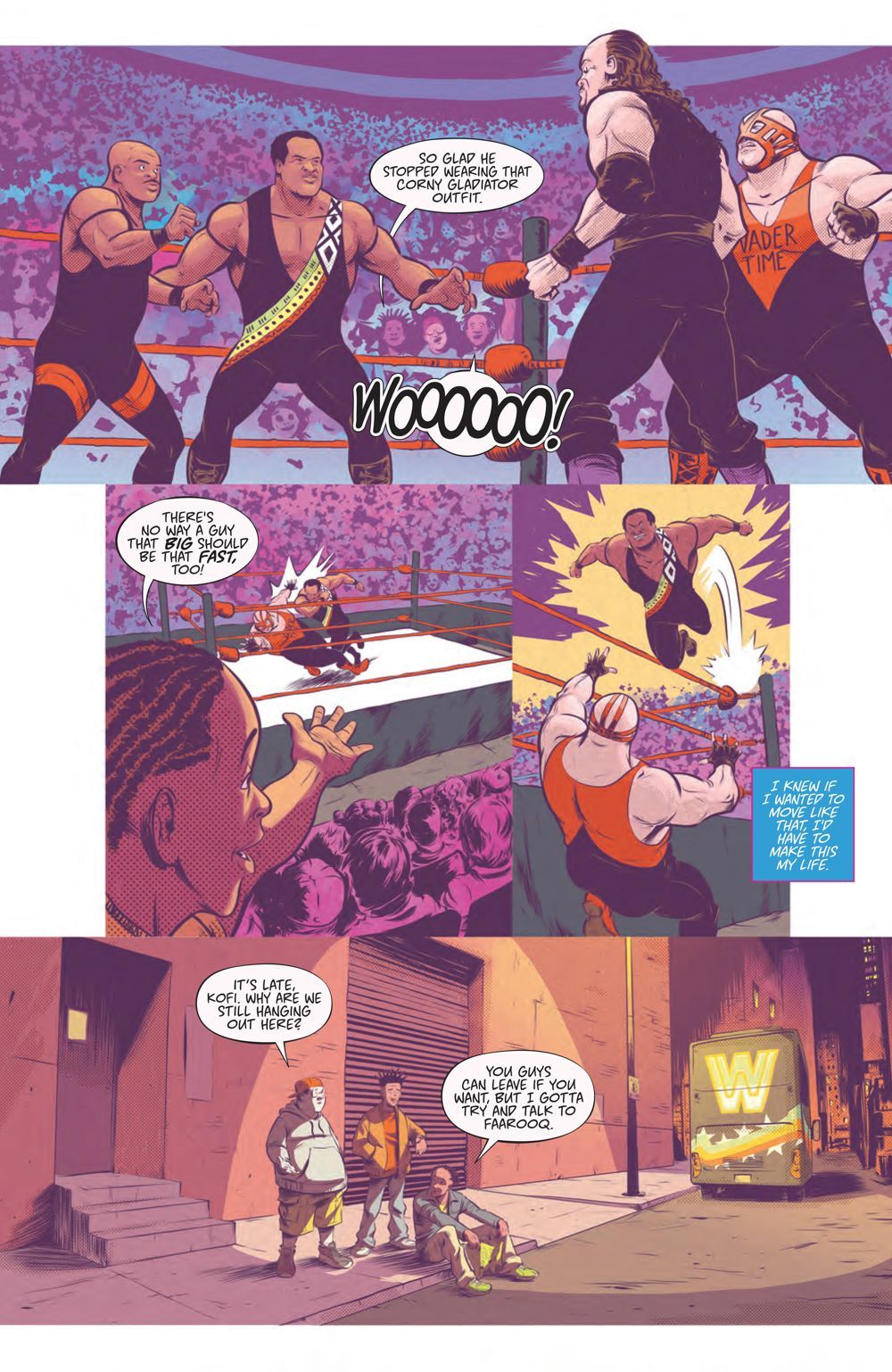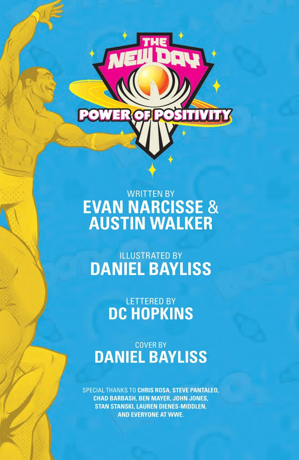 WWE Superstars Kofi Kingston, Xavier Woods, and Big E debuted as a team called The New Day… changing the WWE Universe forever! Everyone knows they're six-time Tag Team Champions—including the longest reign in WWE history—but now, discover the true origins of this unforgettable trio for the first time. Follow young Kofi, Xavier, and Big E as they learn about the world of wrestling, take on opponents big and small, battle their egos (as well as those around them), and realize that they'll always be stronger together than apart! Acclaimed writers Evan Narcisse (Rise of The Black Panther) and Austin Walker (Friends At The Table), and artist Daniel Bayliss (Mighty Morphin Power Rangers), reveal the untold story behind one of the greatest tag teams in WWE history. Collects the complete WWE The New Day: Power of Positivity #1-2.