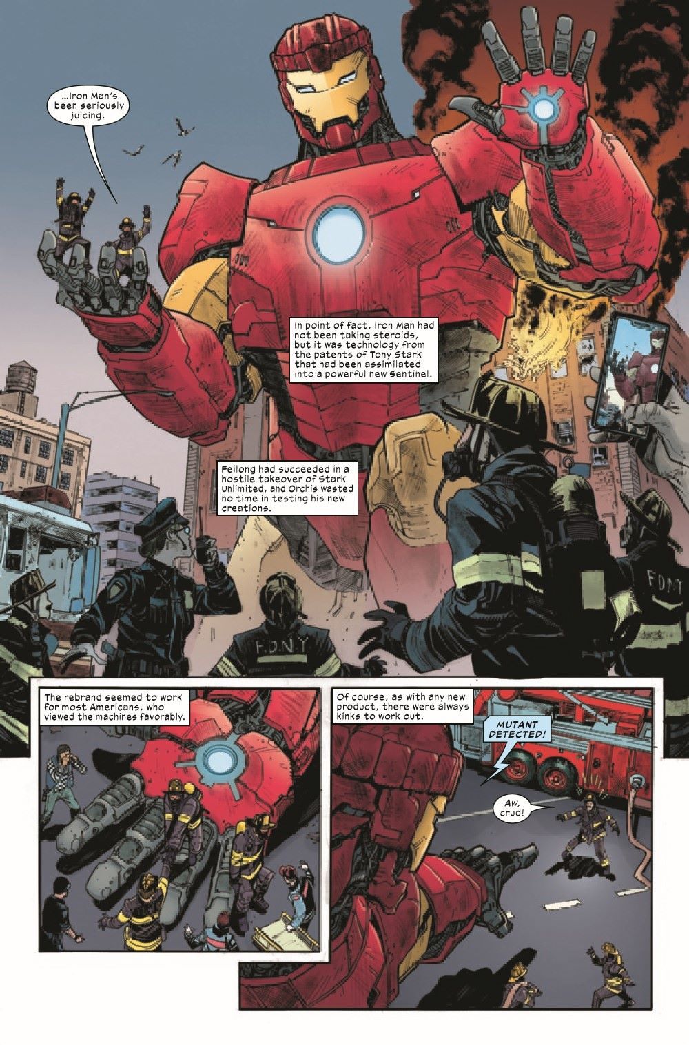 THE SENTINELS GET AN UPGRADE! Anti-mutant fantasist Feilong has taken control of Tony Stark's businesses and devoted Iron Man's technology toward the next generation of Sentinels! These Stark Sentinels are as hard to beat as old Shell-head himself and are fully devoted to crushing the X-Men!