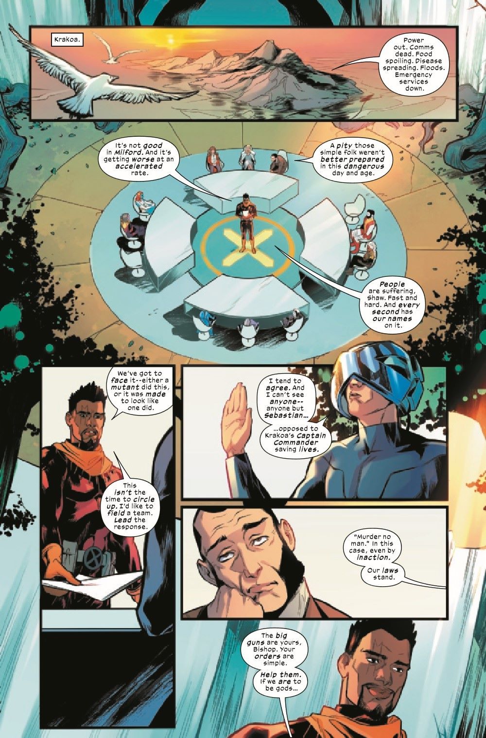 KRAKOA STRIKES?! Ever since mutants declared themselves humanity's new gods, certain circles have been waiting for the other shoe to drop - the wrath. When a small New England town is hit by a devastating mutant attack, it seems the wrath is here. But all isn't as it appears. And Krakoa doesn't hesitate to save lives - so it's time for BISHOP to lead Krakoa's biggest rescue effort yet!