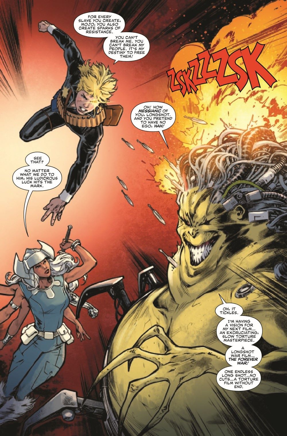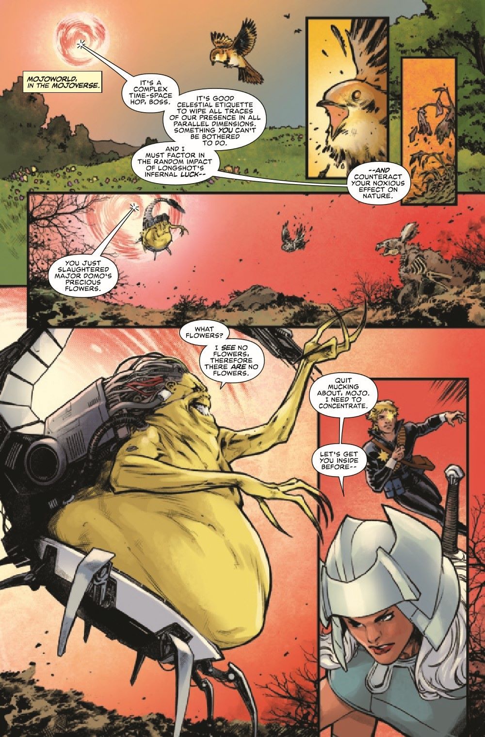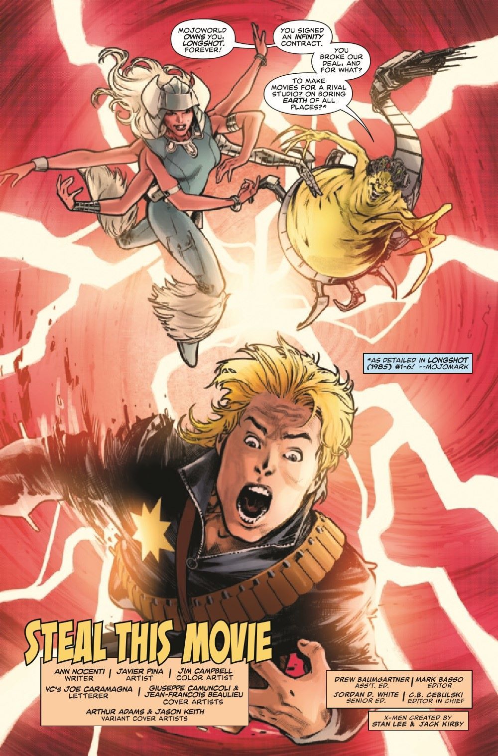 CAN THE X-MEN SURVIVE MOJOWORLD? IT'S A LONGSHOT! Ann Nocenti returns to her co-creation with an all-new story set after the original LONGSHOT miniseries! Longshot's adventure on Earth may be over, but before he can continue his mission, he's pulled into Mojoworld for a multipicture deal he simply can't refuse. And when WOLVERINE and SHADOWCAT investigate the mysterious psionic disturbance, will they be able to escape the pull of Mojoworld before things SPIRAL out of control?