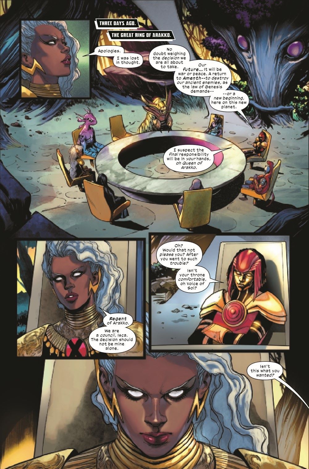 WHO CAN SAVE THE RED PLANET? The mutants of Arakko spent millennia scarred by war - but on what was once called Mars, they're learning to live in peace. STORM knows the red planet needs something greater than a queen. But ABIGAIL BRAND has other plans, along with an unstable VULCAN on her side and CABLE keeping his own secrets. Welcome to X-MEN RED. It's a new world…and someone has to fight for it.