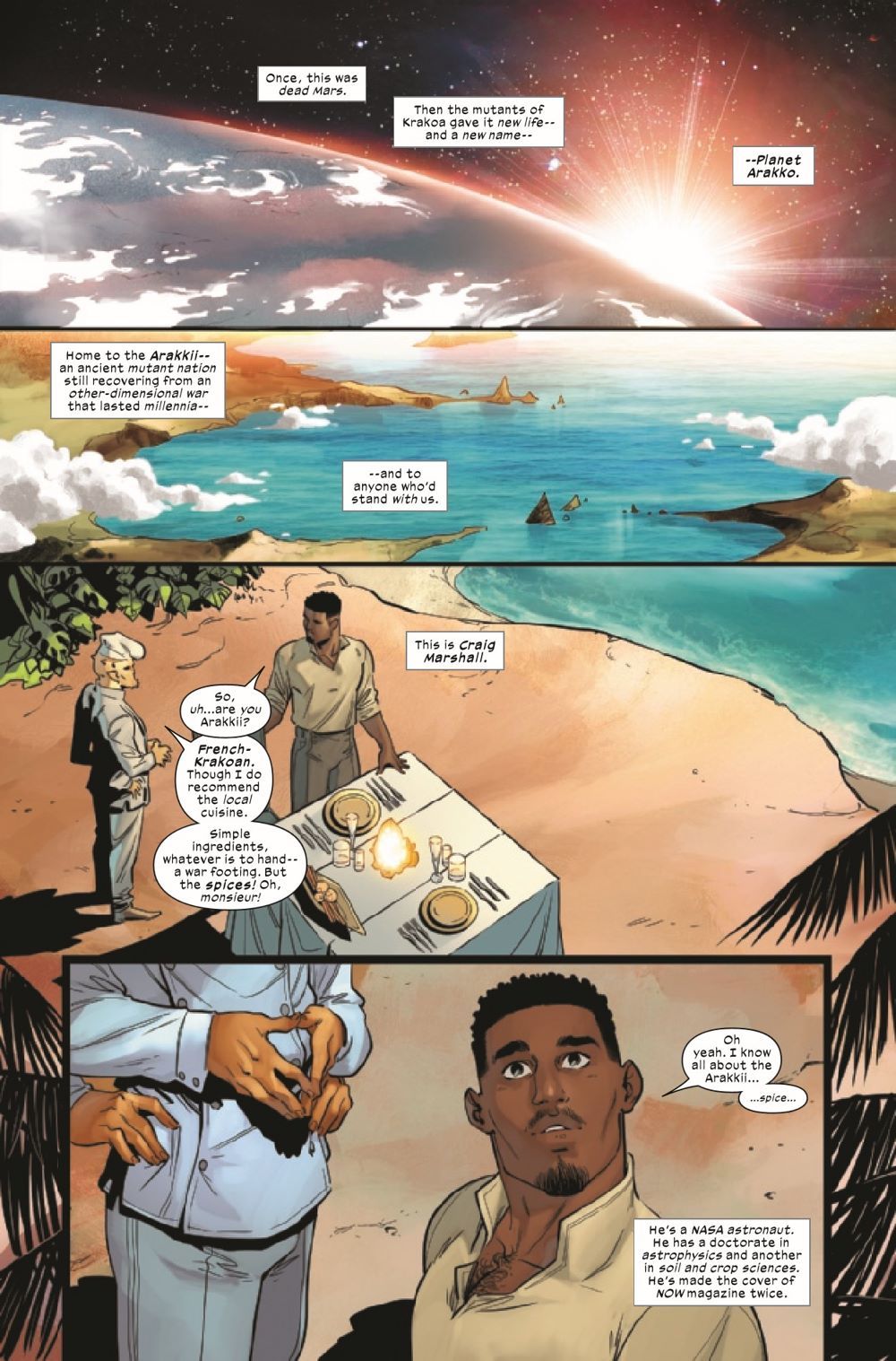 THE CALM BEFORE… After Brand's machinations and the Sins of Sinister, the mutants of Arakko are catching their breath…but even as Storm begins a new romance, she has no time to rest. Charles Xavier has questions about Magneto's death. He's not asking nicely.