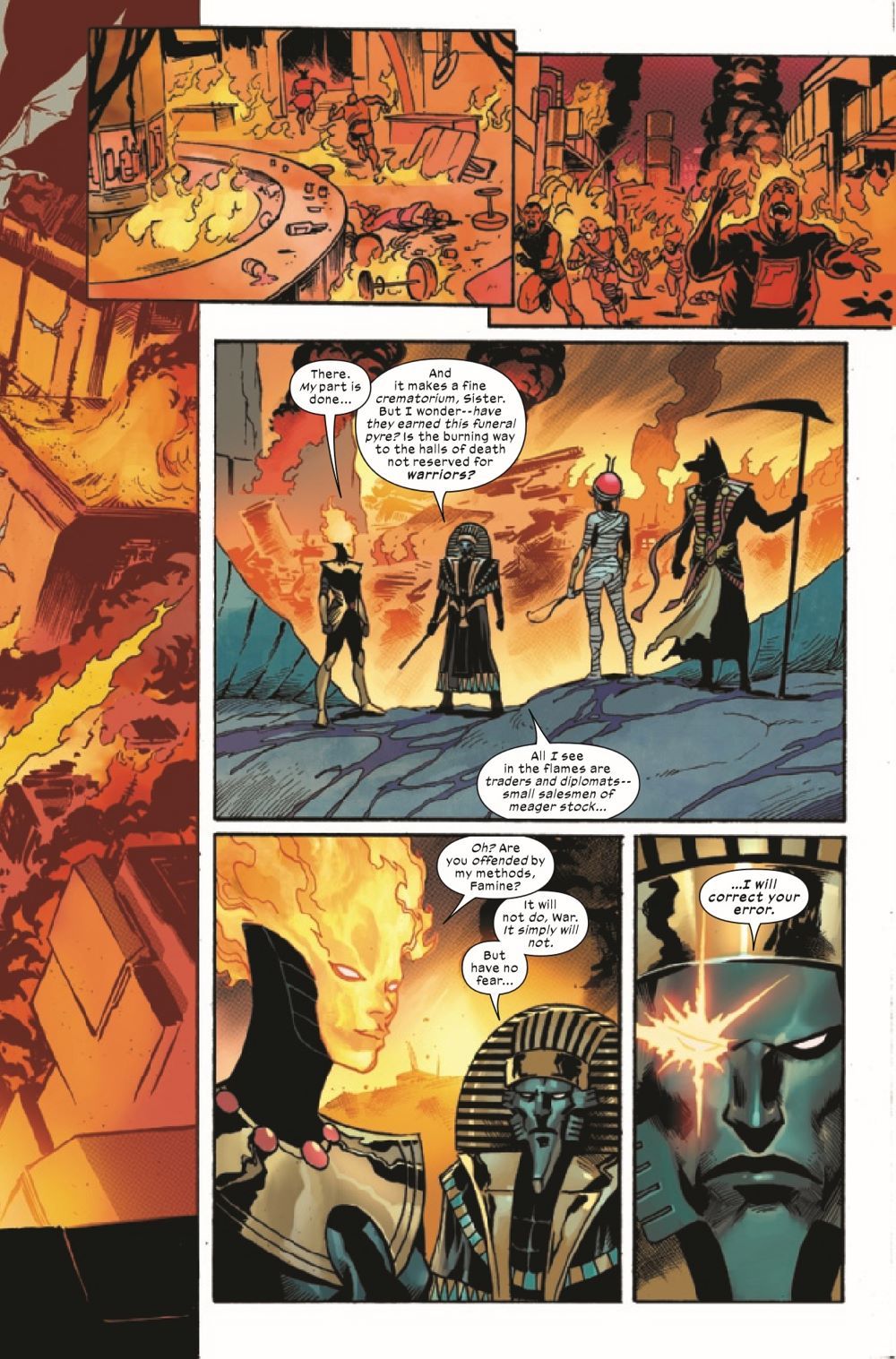 CONDITION RED! The Four Horsemen ride across the land. Daemon armies sweep through the skies. The Spire Vile is open. As Genesis launches her endgame, Storm and the Brotherhood fight for their lives across the Red Planet…and somewhere, the last Okkara Seed blooms. The Revelation is here. Plus: You're not going to want to miss out on an all-new bonus story celebrating Latin/Latinx heroes and creators!