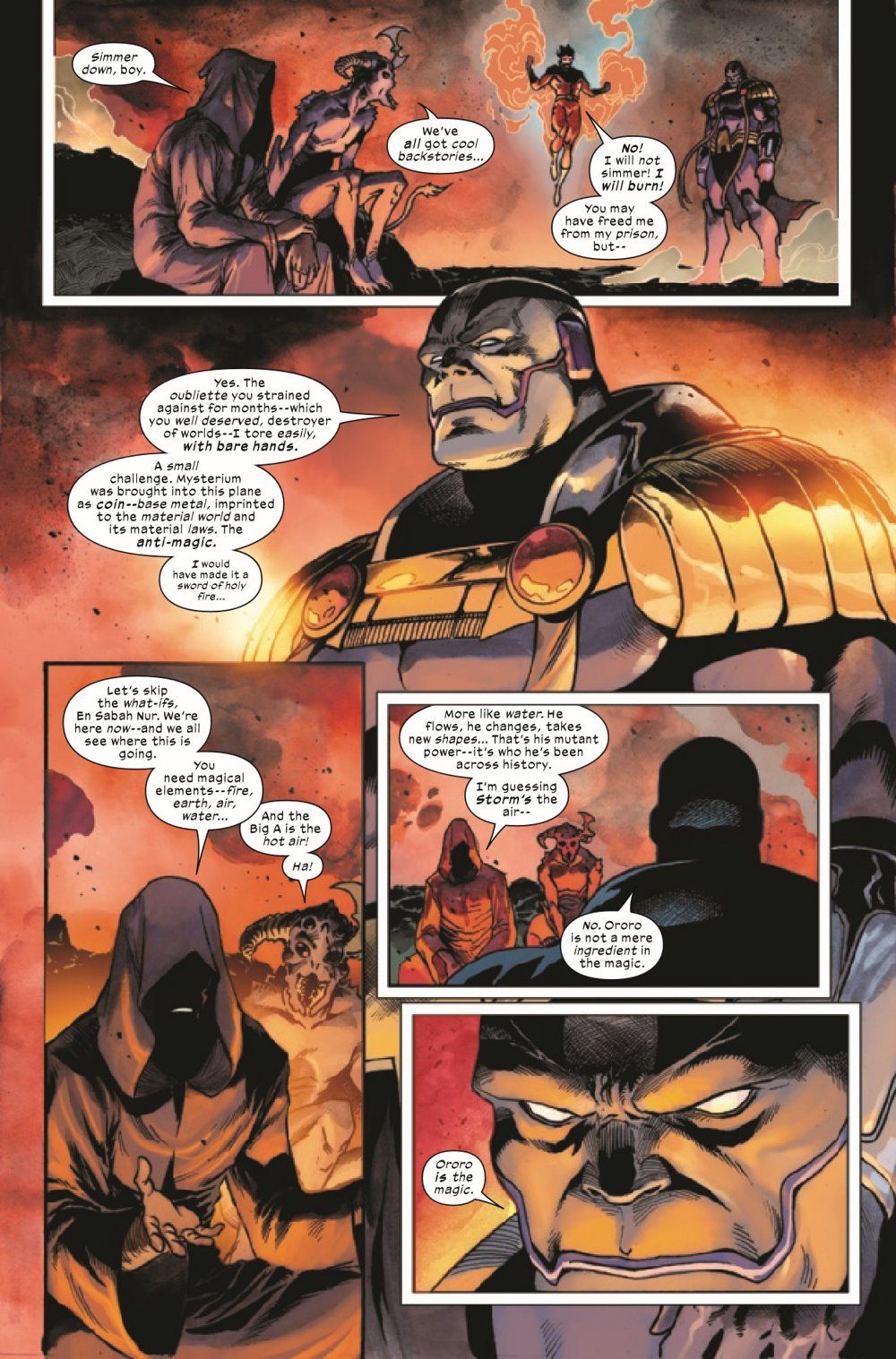 APOCALYPSE NOW! When Genesis returned to Arakko, she brought war in her wake. What will her husband bring with him? This issue - Apocalypse returns! Storm holds the ultimate weapon in her grip - but in the face of En Sabah Nur, even that may not be enough…