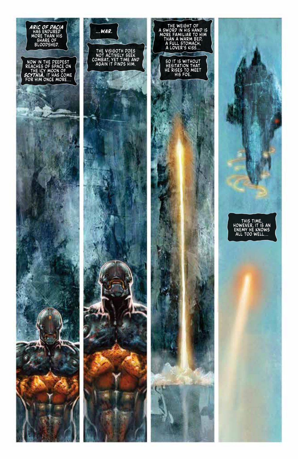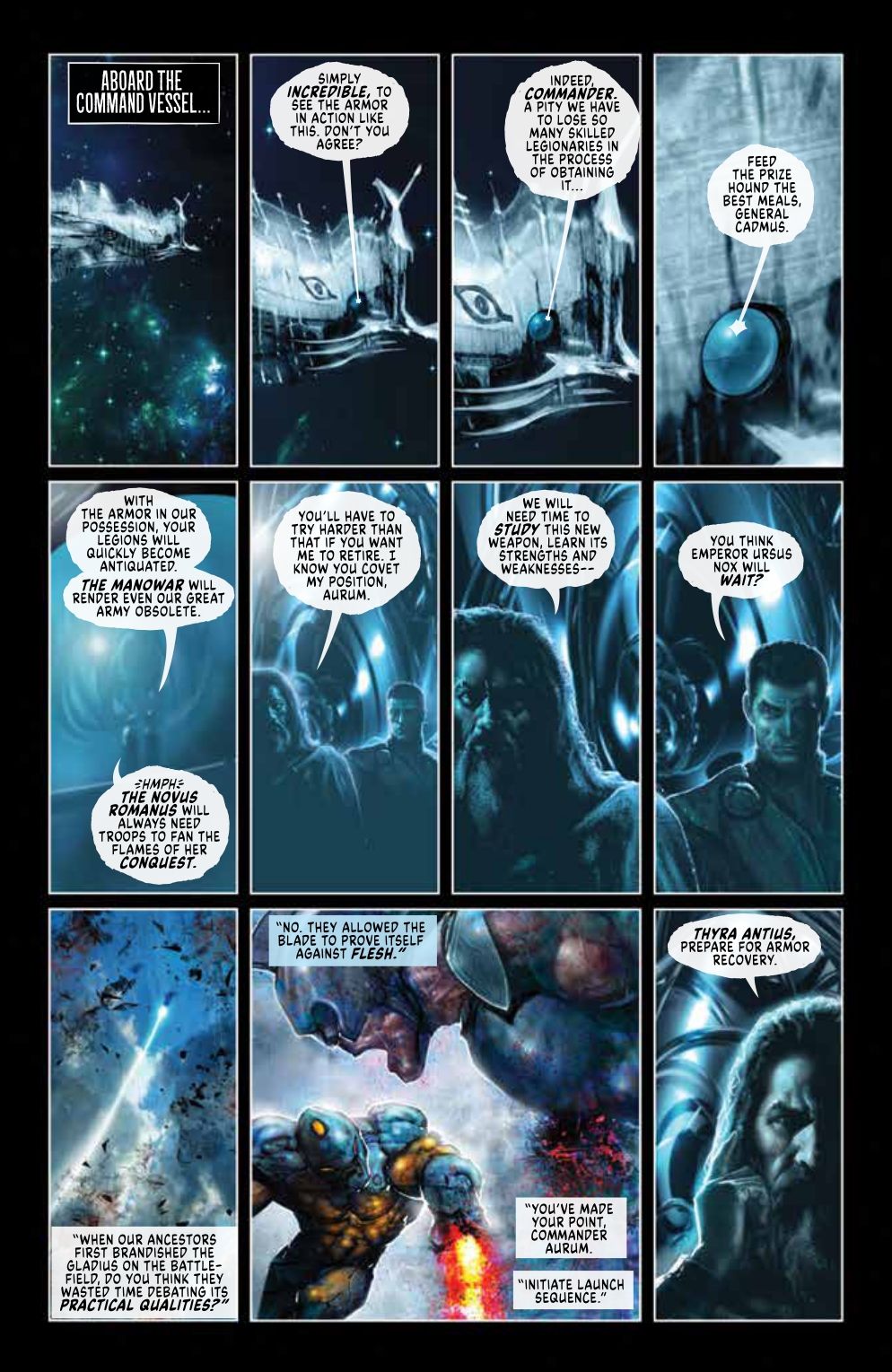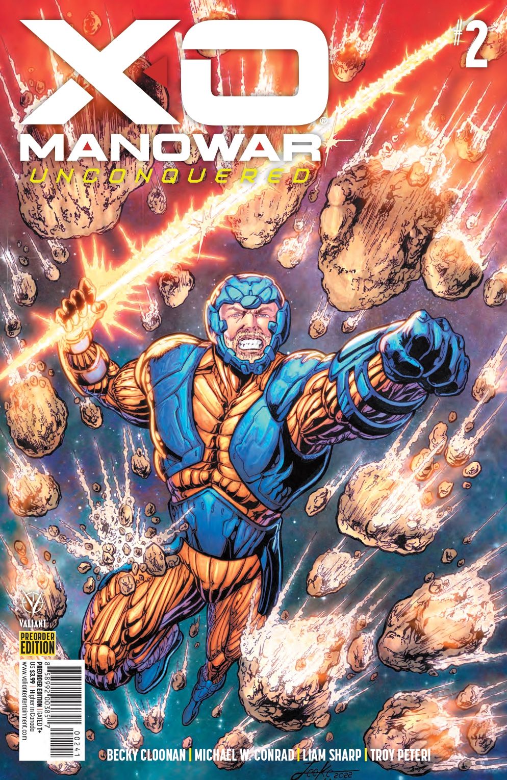 X-O MANOWAR… conquered?? Wounded and with Shanhara badly damaged, Aric gets captured by the menacing Novus Romanus Legion. What hidden horrors lie aboard the Theodosius I wait for our hero? From the acclaimed writing duo of Michael W. Conrad and Becky Cloonan and superstar artist Liam Sharp, X-O MANOWAR UNCONQUERED #2 promises to deliver the grand space epic you've been waiting for!
