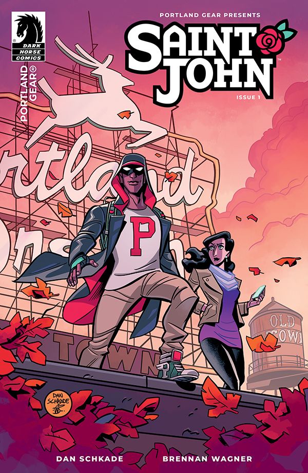 Media Release -- Dark Horse Comics, in partnership with groundbreaking clothing brand Portland Gear, presents the Rose City's very own superhero in Saint John. Born and raised in the streets of Portland, Oregon, Saint John is unlike any superhero before him, built for the quirks that make the city unique. Cartoonist Dan Schkade (Will Eisner's The Spirit) and Portland native creator Brennan Wagner, (Grendel: Devil's Odyssey), along with letterer Frank Cvetkovic (Count Crowley), bring to life the vivid, sometimes funky world of the Rose City and the hero destined to keep it safe.