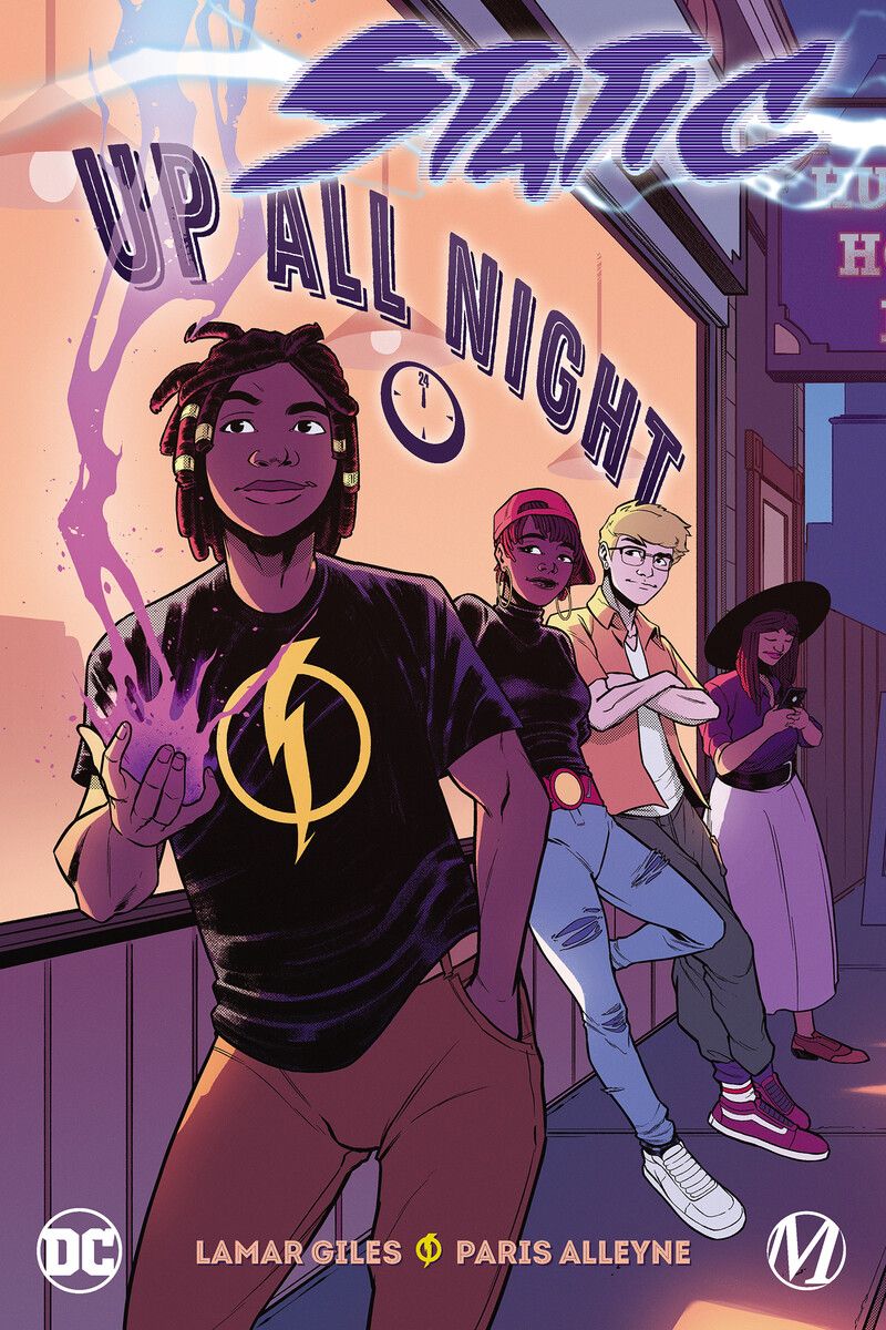 Finally, on sale June 6, 2023, Static, Milestone's most popular super hero, makes his graphic novel debut in Static: Up All Night. Written by two-time Edgar Award finalist Lamar Giles (Not So Pure And Simple) with art by Eisner Award-winning Paris Alleyne (The All-Nighter), Static—AKA Virgil Hawkins—discovers that even Super Hero abilities can't mend a broken heart.