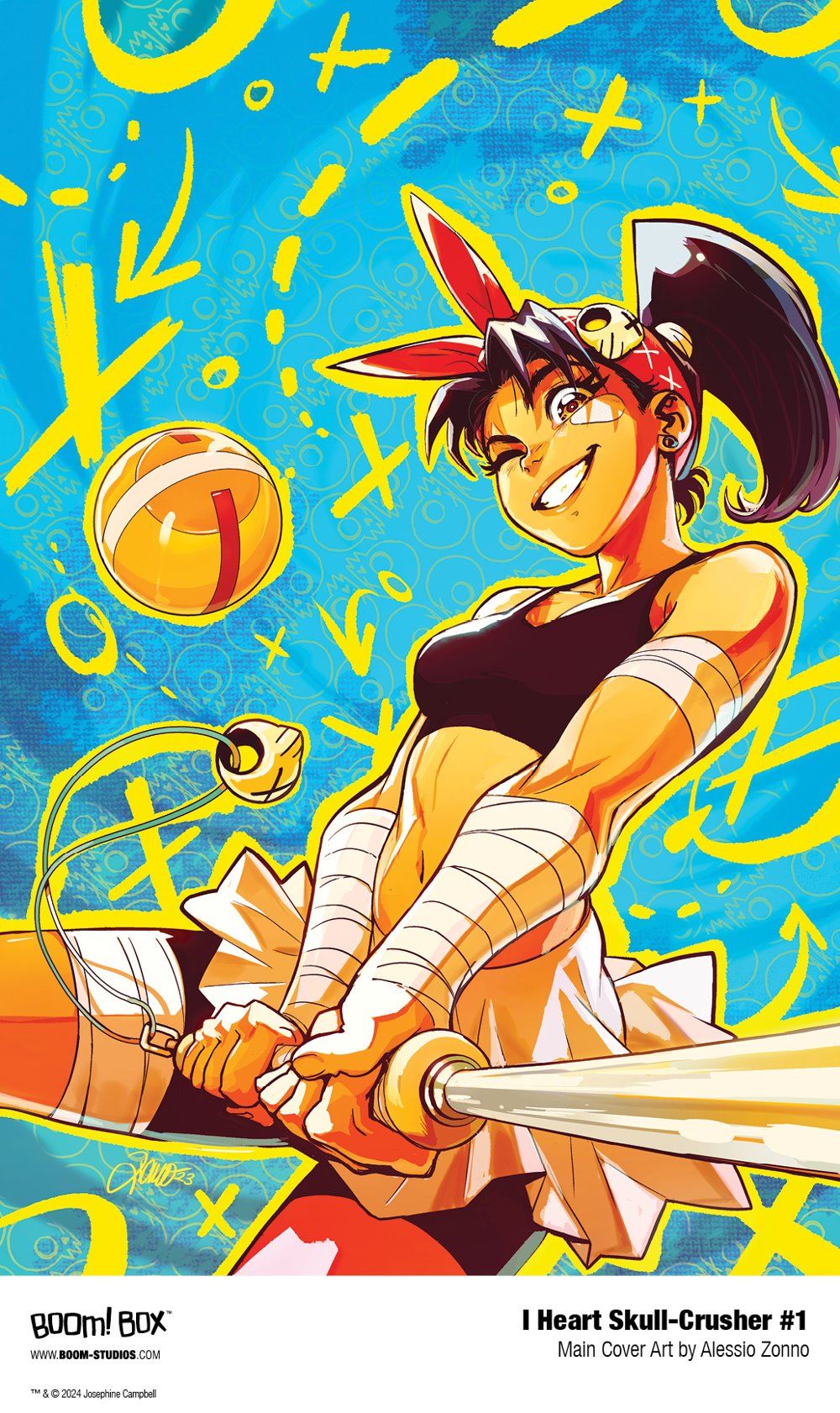 "I am BEYOND thrilled to bring I Heart Skull-Crusher to life with the talented Alessio; it's everything I love–queer characters, anime influences, action, comedy, broken hearts, broken bones, Post-Apocalypse death matches–wrapped up in one gorgeous package. This is the story I've been wanting to tell for years!" said series writer Josie Campbell.