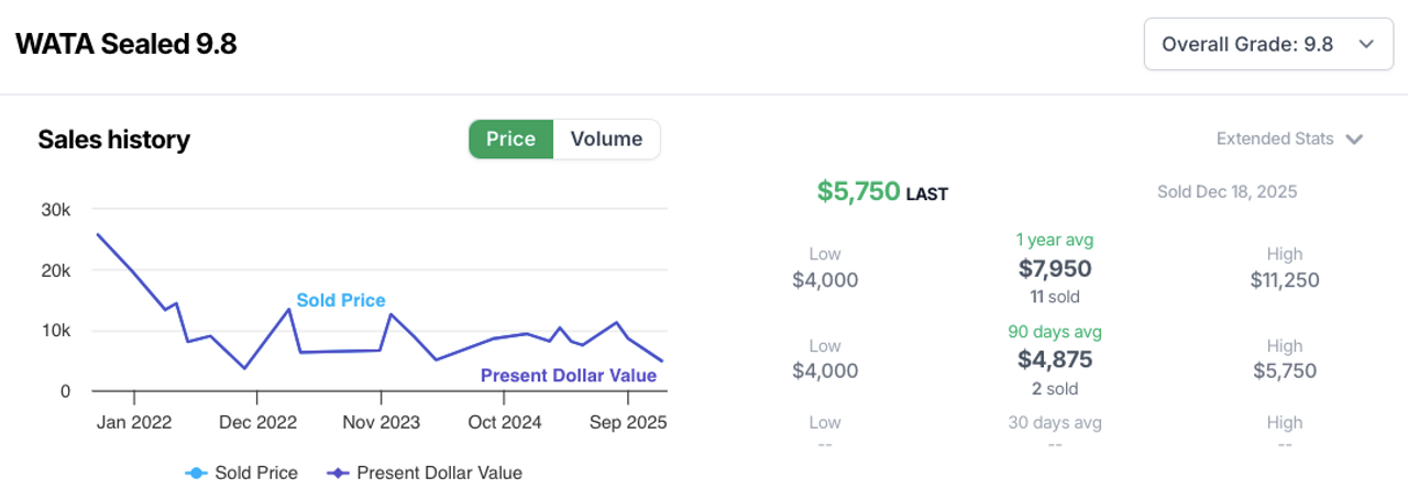About three months later, a WATA 9.8 A+ copy (a 9.8 box but has a less than perfect factory seal) sold for $32,400 in January 2022.