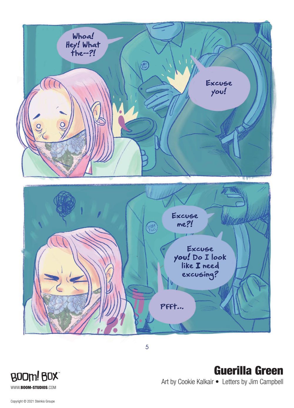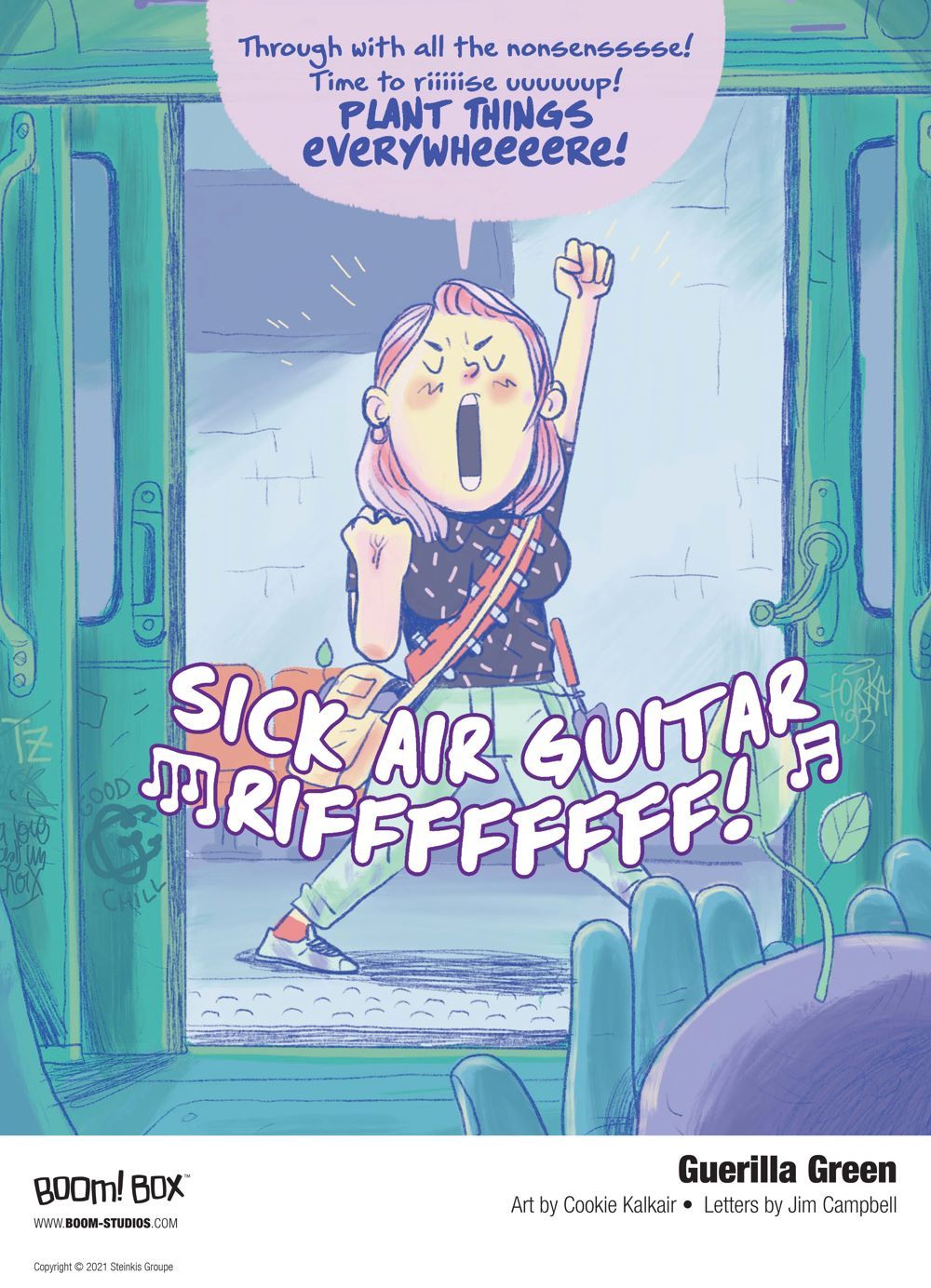 Media Release -- BOOM! Studios today revealed a first look of GUERILLA GREEN, the new original graphic novel from the acclaimed team of Cookie Kalkair & Ophélie Damblé about a thirty-year-old city-dweller who's joined the guerilla gardening movement, which has been fighting for decades to bring more green back into cities that increasingly resemble concrete jungles, available in April 2021.
