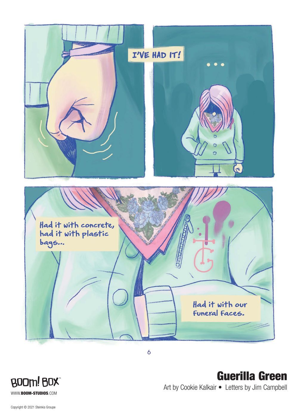 GUERILLA GREEN is the latest release from BOOM! Studios' award-winning BOOM! Box imprint, home to groundbreaking original series such as Lumberjanes by Shannon Watters, Grace Ellis, Brooklyn Allen, and Noelle Stevenson; Giant Days by John Allison, Lissa Treiman, and Max Sarin; The Last Witch by Conor McCreery and V.V. Glass; Juliet Takes a Breath by Gabby Rivera and Celia Moscote; The Avant-Guards by Carly Usdin and Noah Hayes; Fence by C.S. Pacat and Johanna the Mad; Goldie Vance by Hope Larson and Brittney Williams; Seen: True Stories of Marginalized Trailblazers; and the upcoming Specter Inspectors by Bowen McCurdy and Kaitlyn Musto.