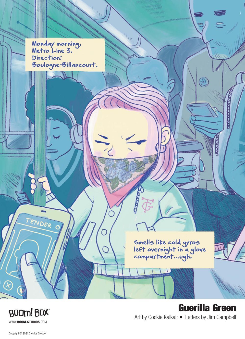 Print copies of GUERILLA GREEN will be available for sale on April 7, 2021 at local comic book shops (use comicshoplocator.com to find the nearest one )and on April 13, 2021 at bookstores or at the BOOM! Studios webstore. Digital copies can be purchased from content providers, including comiXology, iBooks, Google Play, and Madefire.